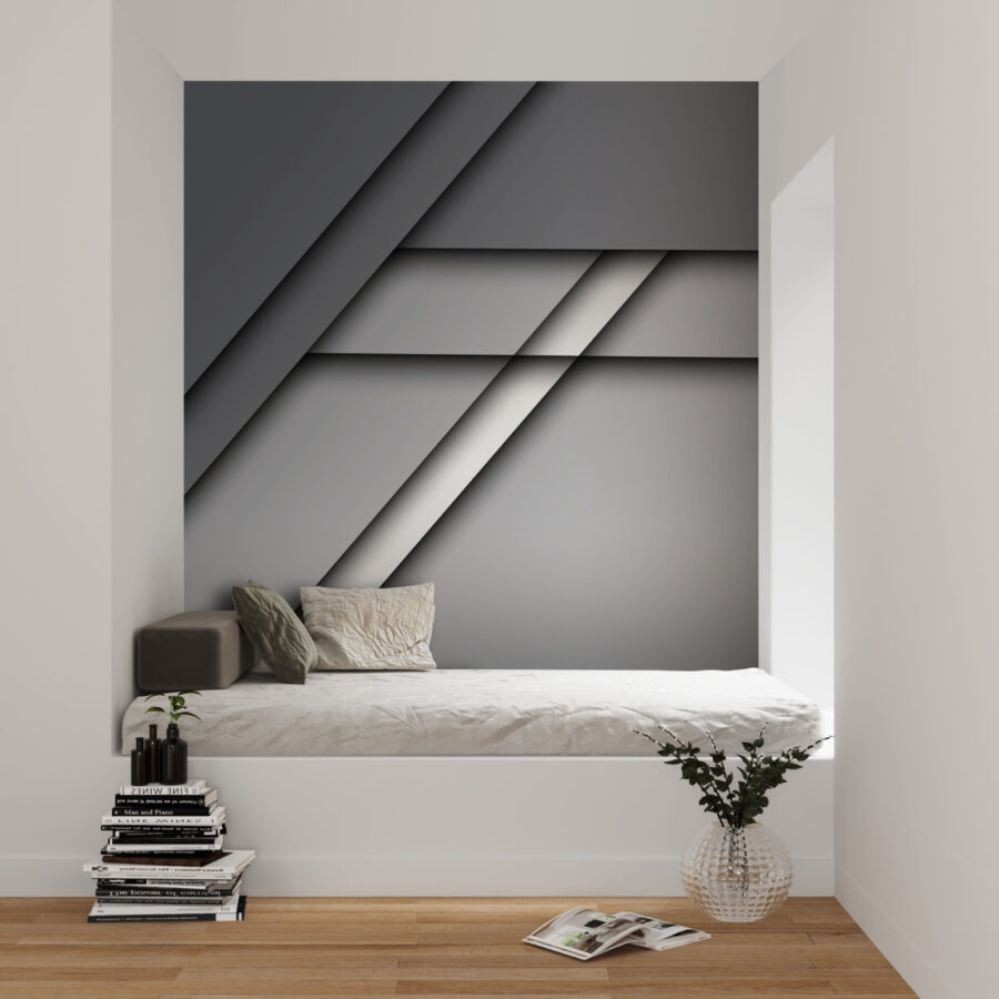 Verwandeln Sie eine kahle Wand in einen stilvollen Gesprächsanlass mit dieser auffälligen Fototapete. Das reiche Zusammenspiel von Grau und Weiß schafft eine anspruchsvolle Kulisse, die alles andere als langweilig ist. Ob in einem gemütlichen Wohnzimmer oder einem schicken Büro, diese Fototapete hebt die Stimmung auf subtile Weise. Stellen Sie sich vor, Sie trinken einen Kaffee und genießen die Ruhe, die es ausstrahlt – wie die Umarmung eines Lieblingspullovers an einem kühlen Tag. Und hey, es passt perfekt zu bunten Möbeln oder Pflanzen. Wer hätte gedacht, dass ein einfaches Design so erfrischend sein kann? Es geht nur darum, einen Raum zu schaffen, der genau richtig ist.