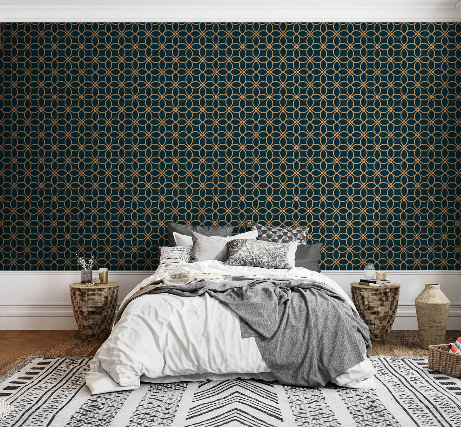 Einen Raum zu verwandeln ist so einfach wie das Anbringen dieser atemberaubenden Wandtapete aus Kreisen und Linien. Im Ernst, es ist wie ein lustiges Puzzle für Ihre Wände, das alle Arten von Kreativität und Wärme in den Raum einlädt. Stellen Sie sich vor, Sie haben Freunde zu Gast, die es sich nicht verkneifen können, mit ihren Fingern über die kunstvoll gestalteten Kreise zu streichen. Die Farben? Perfekt ausbalanciert, bieten sie einen beruhigenden Hintergrund, der Freude auslöst, ohne nach Aufmerksamkeit zu schreien. Es hat diese künstlerische Ausstrahlung, die eine gemütliche Leseecke oder ein lebhaftes Spielzimmer zum perfekten Ort macht. Machen Sie sich bereit für einen Wirbel von Komplimenten!