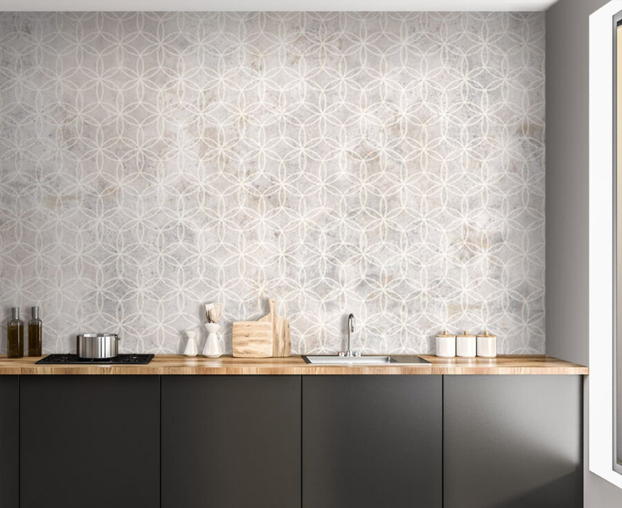 Fototapeten Weißes Blumenmuster auf einer grauen Oberfläche (Artikelnummer: u71923)