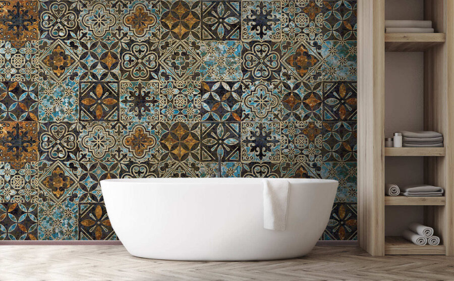 Möchten Sie Ihren Wänden ein wenig Charakter verleihen? Sehen Sie sich diese “Wandbilder mit verschnörkelten Vintage-Mustern und floralen Kacheln” an. Jedes Mal, wenn Sie Ihr Zimmer betreten, ist es, als würden Sie ein gemütliches Vintage-Café betreten. Die verschlungenen floralen Kacheln verleihen dem Raum einen Hauch von altem Charme, der perfekt ist, um einen warmen, einladenden Raum zu schaffen.