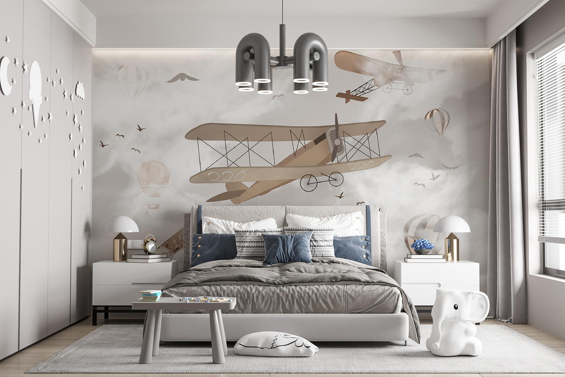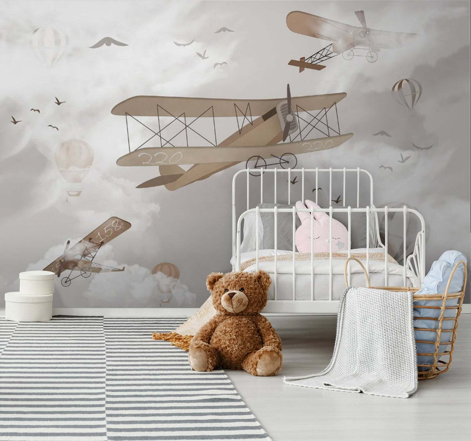 Stellen Sie sich vor, Sie schweben hoch über den Wolken mit dieser bezaubernden Fototapete “Heißluftballon am Himmel”. Das skurrile Design dieser Fototapete mit Heißluftballons und alten Flugzeugen, die zwischen den Wolken tanzen, eignet sich perfekt für Kinderzimmer oder für alle, die jung geblieben sind – einfach traumhaft! Stellen Sie sich vor, Sie wachen jeden Tag mit dieser Szene auf, als ob Sie sich in einem endlosen Abenteuer befinden.