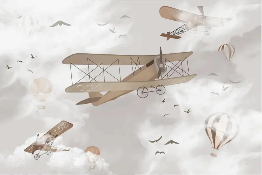 Stellen Sie sich vor, Sie schweben hoch über den Wolken mit dieser bezaubernden Fototapete “Heißluftballon am Himmel”. Das skurrile Design dieser Fototapete mit Heißluftballons und alten Flugzeugen, die zwischen den Wolken tanzen, eignet sich perfekt für Kinderzimmer oder für alle, die jung geblieben sind – einfach traumhaft! Stellen Sie sich vor, Sie wachen jeden Tag mit dieser Szene auf, als ob Sie sich in einem endlosen Abenteuer befinden.