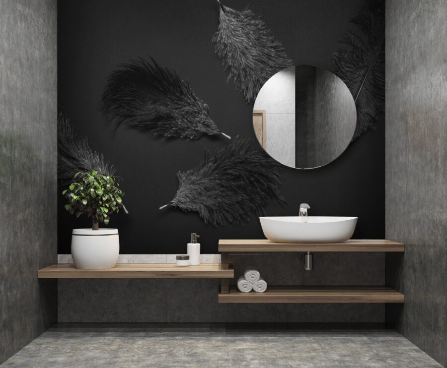 Haben Sie schon einmal einen Raum betreten und das Gefühl gehabt, ihm fehle das gewisse Etwas? Diese Fototapete “Schwarze Feder auf schwarzer Oberfläche” könnte genau das Richtige für Sie sein. Stellen Sie sich einen warmen Abend, sanftes Licht und dieses dramatische und doch schlichte Design vor – es passt einfach perfekt zusammen. Es hat eine coole, fast geheimnisvolle Ausstrahlung, die Ihrem Raum Tiefe verleiht, ohne ihn zu überwältigen. Federleicht und doch gerade kantig genug, um jedes Mal ins Auge zu fallen, wenn Sie vorbeigehen. Für Liebhaber des Schickes ist es, als hätte man einen Hauch von Eleganz an der Wand! Wenn Sie also das nächste Mal darüber nachdenken, Ihr Zimmer zu verschönern, sind diese Federn vielleicht genau das Richtige für Sie. Viel Spaß damit!