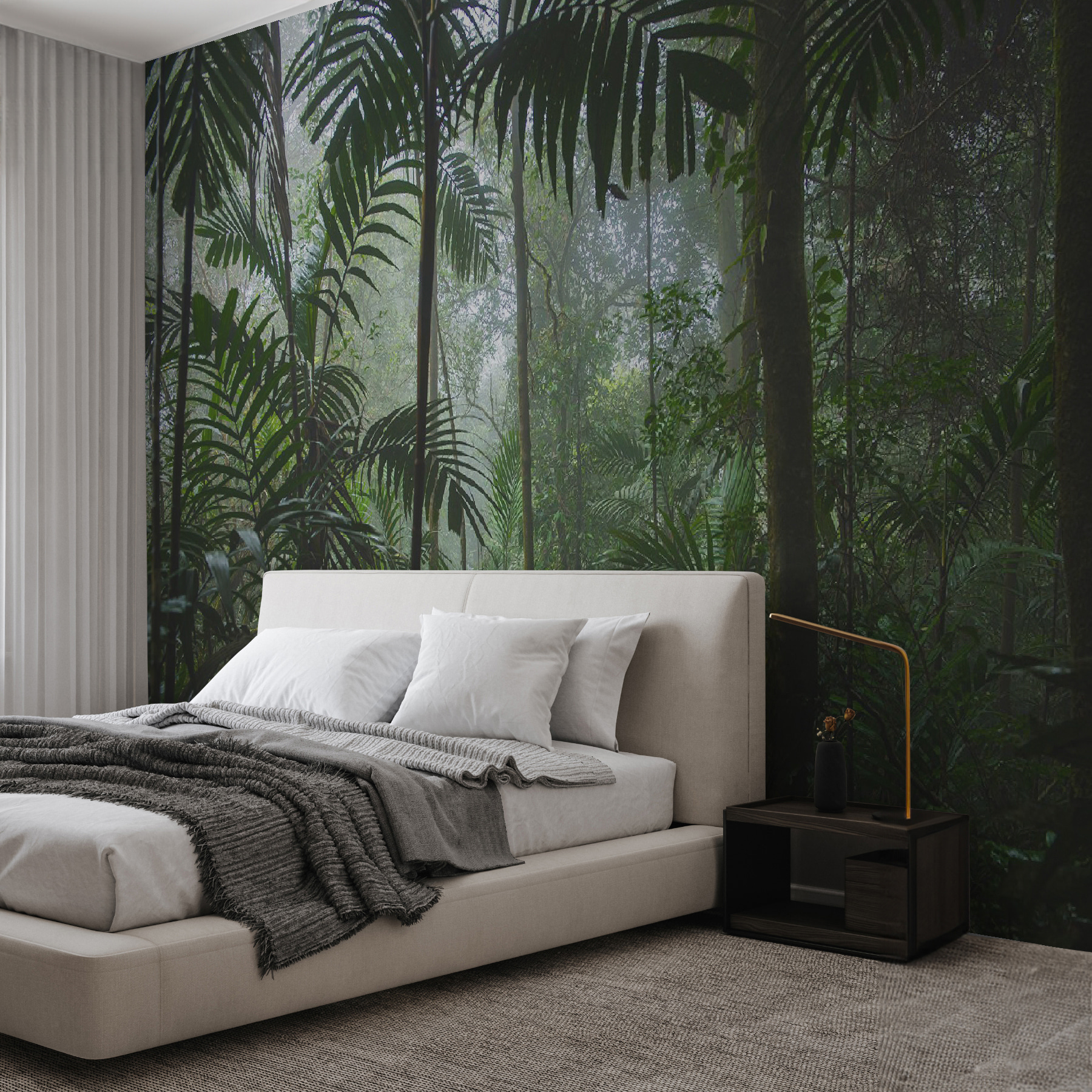 Stellen Sie sich vor, Sie betreten einen dichten, nebligen Dschungel – direkt in Ihrem eigenen Zuhause. Das ist es, was dieses Wandbild “Dichter Dschungel mit nebliger Atmosphäre” in Ihren Raum bringt. Es ist, als ob Sie den Zauber eines nebligen Waldes an Ihrer Wand einfrieren würden. Die satten Grüntöne und der weiche, umhüllende Nebel laden zum Entspannen ein und inspirieren vielleicht sogar zu einem kleinen Tagtraum über Abenteuer in der Wildnis. Perfekt für jeden Raum, der einen Hauch von Natur oder eine beruhigende Ausstrahlung braucht. Passt wunderbar zu Holzmöbeln, finden Sie nicht auch? Eine kleine Flucht vor der Hektik des Alltags, ohne das Haus verlassen zu müssen.