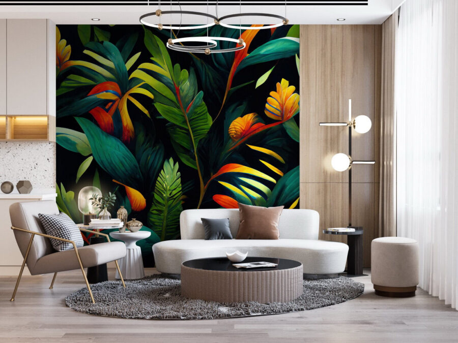 1 Rezension für Fototapeten Lebendige tropische Blätter und Blumen