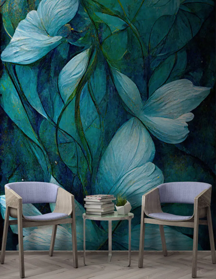 Diese Fototapete “Painting of Flowers and Leaves” ist wie ein Hauch von frischer Luft für jeden Raum. Stellen Sie sich vor, dass Sie jedes Mal, wenn Sie Ihren Raum betreten, einen wunderlichen Garten betreten. Die kühlen Blautöne und die zarten Blütenblätter fühlen sich fast lebendig an und wiegen sich sanft in der Brise. Perfekt, um einen Hauch von Natur ins Haus zu holen, ohne dass man gießen muss!