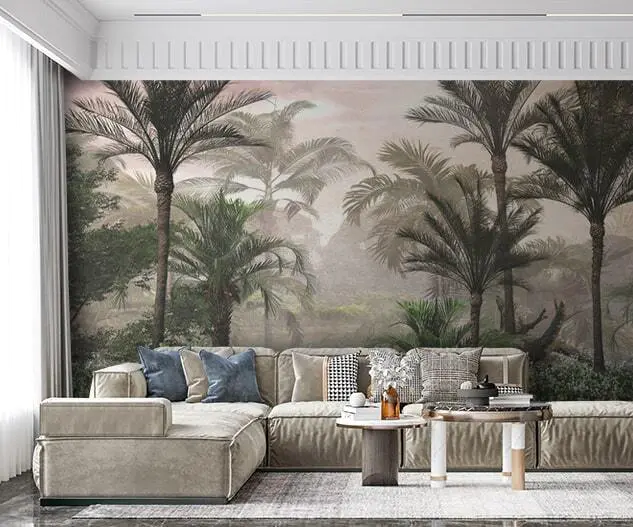Fototapete “Gelassener Morgen im tropischen Paradies” – ist dieser Name nicht einladend? Stellen Sie sich vor, Sie wachen mit dieser friedlichen Szene auf, direkt in Ihrem Wohnzimmer. Kräftige Grüntöne, zarte Blüten und hoch aufragende Palmen, die in einen sanften Morgennebel gehüllt sind. Es ist, als würden Sie Ihren eigenen Dschungel betreten, ohne Ihre Couch zu verlassen.