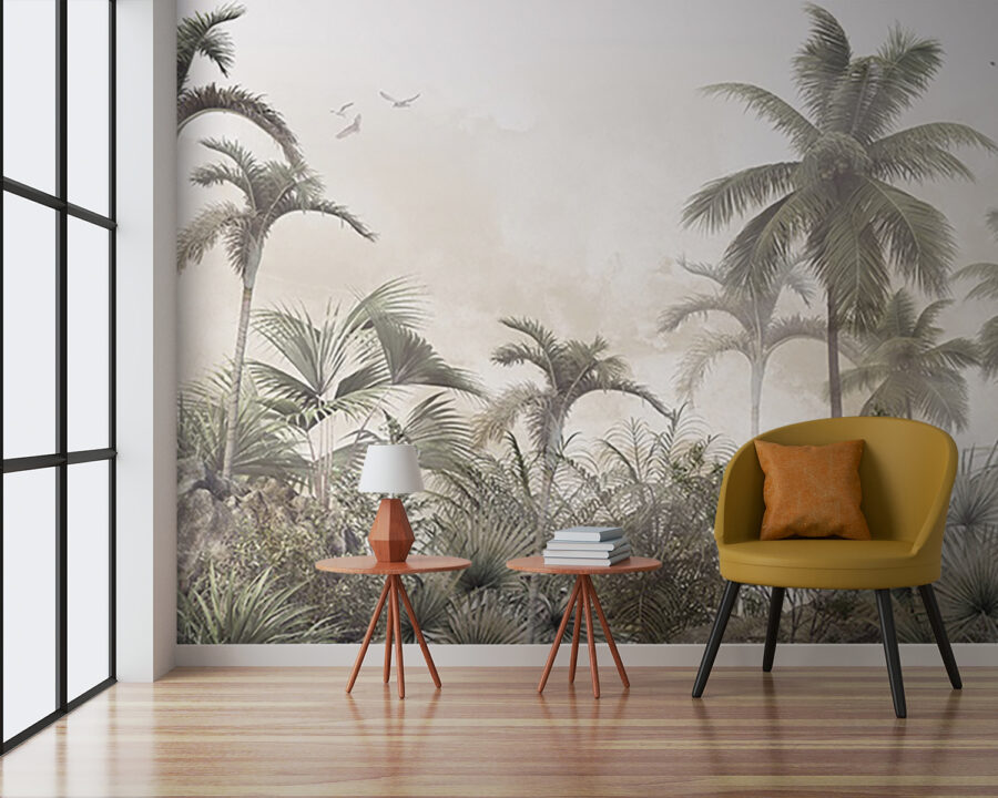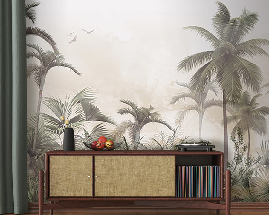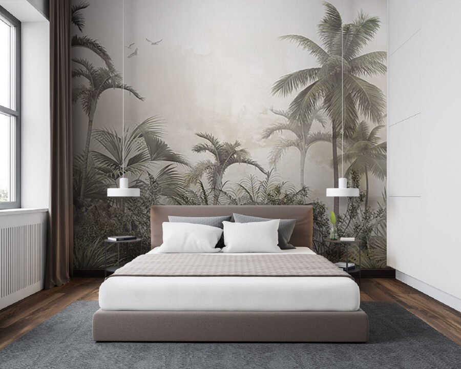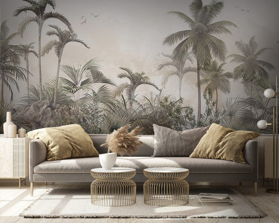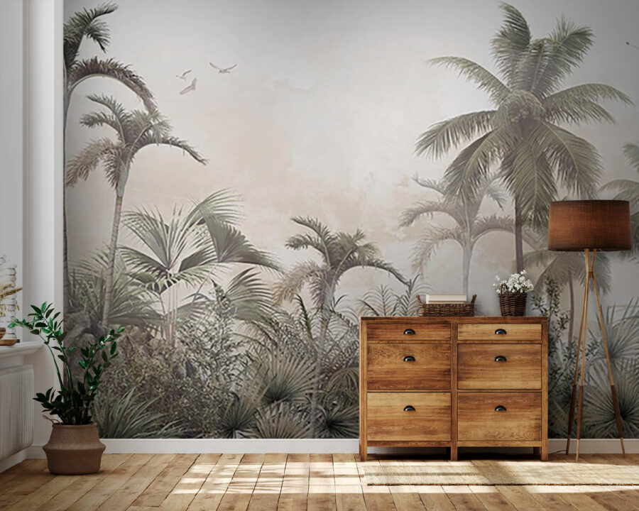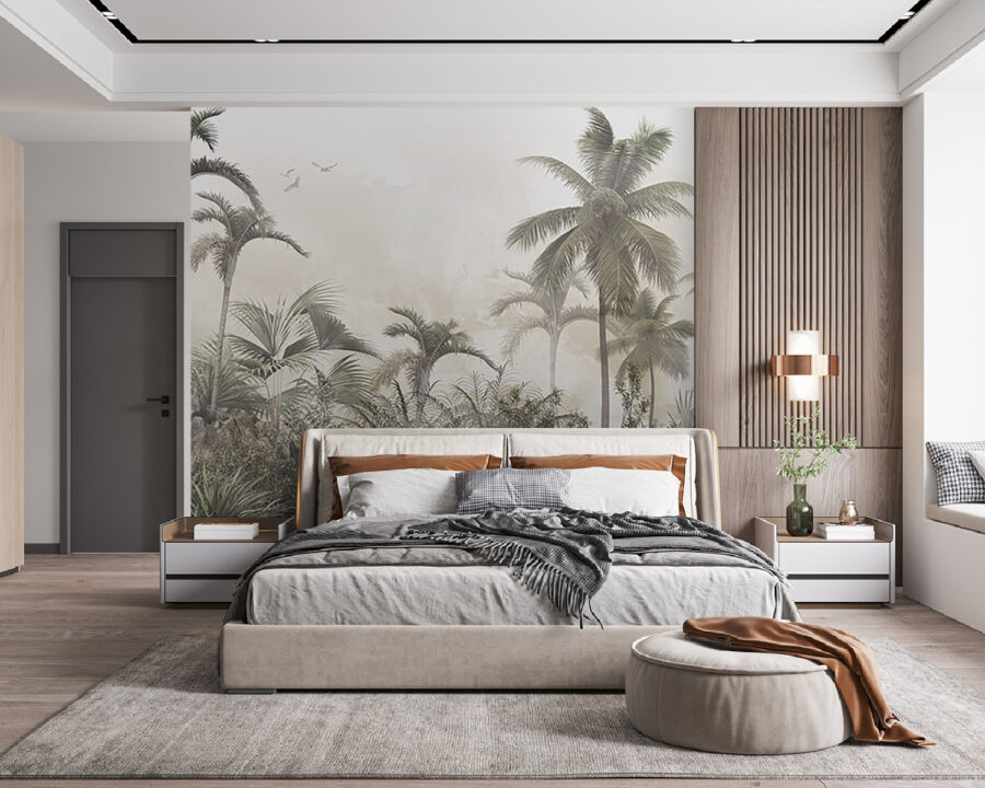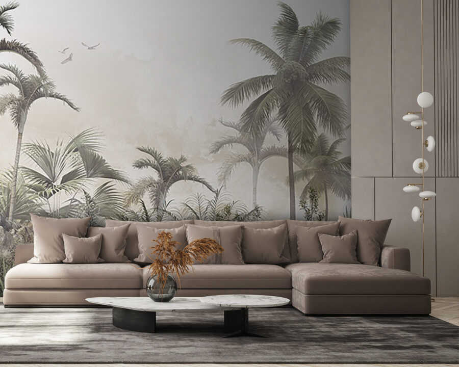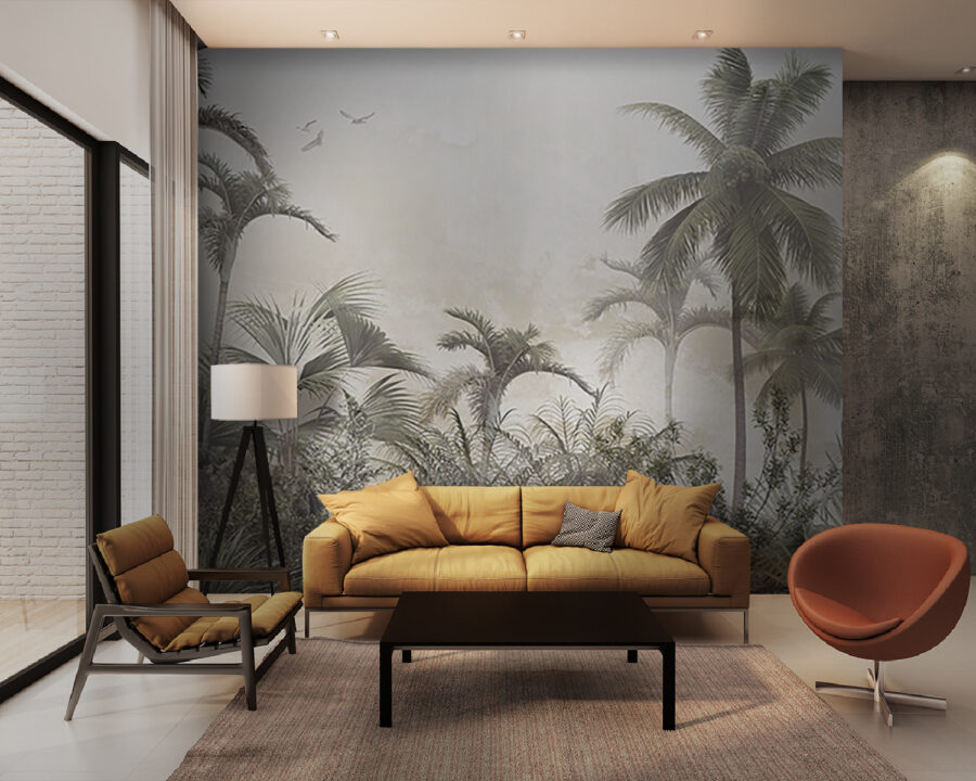 Verwandeln Sie jeden Raum in eine entspannte tropische Oase mit dieser traumhaften Wandtapete mit Palmen und nebligen Felsen. Stellen Sie sich vor: Sie kommen herein und bam! Jedes Mal, wenn Sie einen Blick darauf werfen, fühlt es sich wie ein Kurzurlaub an. Der sanfte Nebel hüllt die Szene in eine gemütliche Umarmung und lädt zu Tagträumen von sonnigen Stränden und raschelnden Blättern ein. Es strahlt eine entspannte Atmosphäre aus und eignet sich daher perfekt für ein Wohnzimmer, ein Schlafzimmer oder sogar ein Heimbüro, das dringend etwas Zen braucht. Betrachten Sie es als eine Botschaft der Natur: „Entspannen Sie sich, Sie haben es sich verdient!“ Ob Sie nun Kaffee trinken oder Ihr nächstes Abenteuer planen, dieses Wandbild sorgt für einen Hauch von Ruhe. Stellen Sie sich nur die Komplimente Ihrer Freunde vor – vielleicht erwischen Sie sogar jemanden, der versucht, in der Nähe ein Nickerchen zu machen!