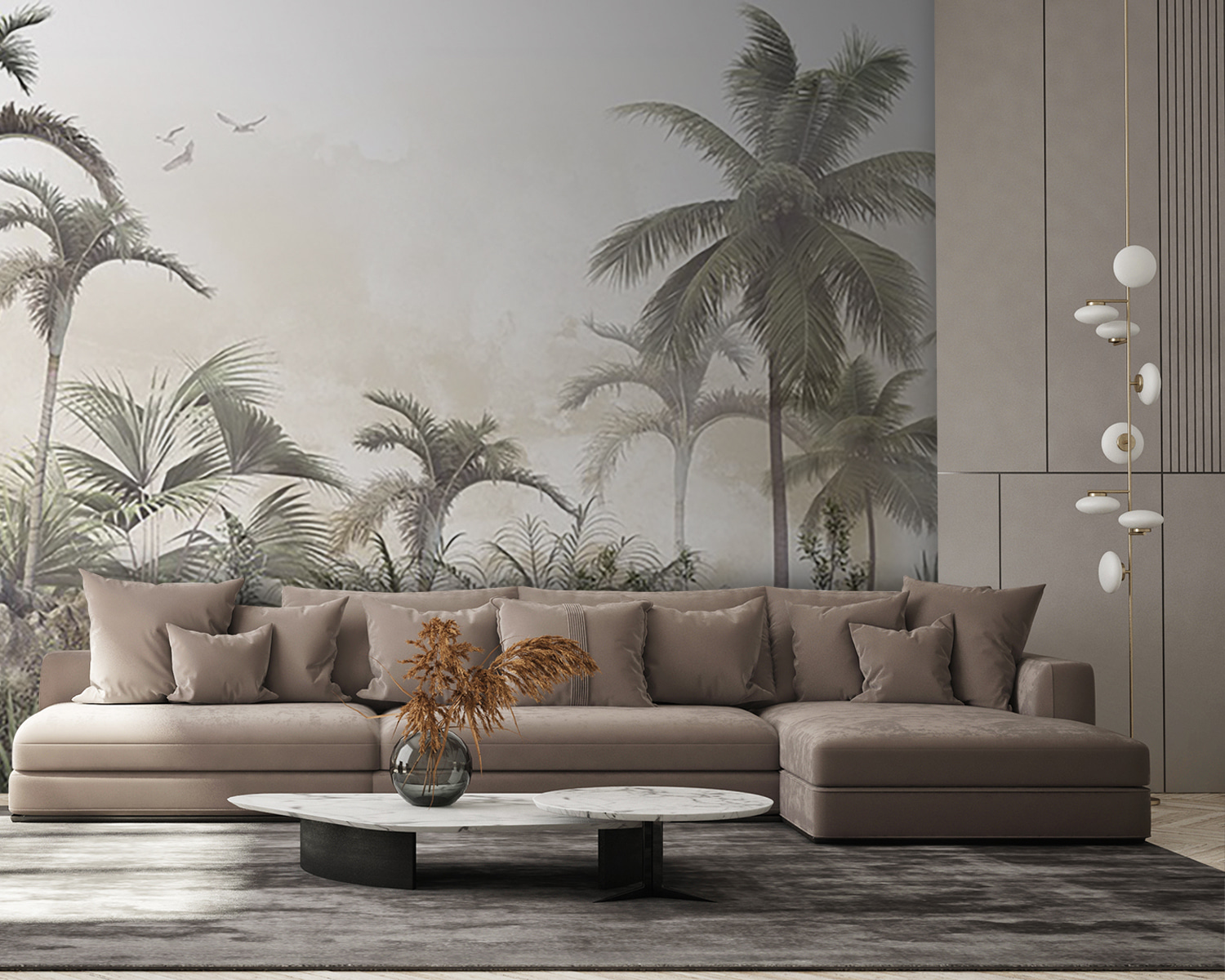 Transform any room into a chill tropical escape with this dreamy mural of palm trees and misty rocks. Picture this: you walk in, and bam! It feels like a mini-vacation every time you glance at it. The soft fog wraps the scene in a cozy hug, inviting daydreams of sunny beaches and rustling leaves. It’s got that laid-back vibe, making it perfect for a living room, bedroom, or even a home office that desperately needs some zen. Think of it as nature’s way of saying, “Relax, you’ve earned it!” Whether you’re sipping coffee or planning your next adventure, this mural adds a splash of tranquility. Just imagine the compliments from friends—you might even catch someone trying to sneak a nap nearby!