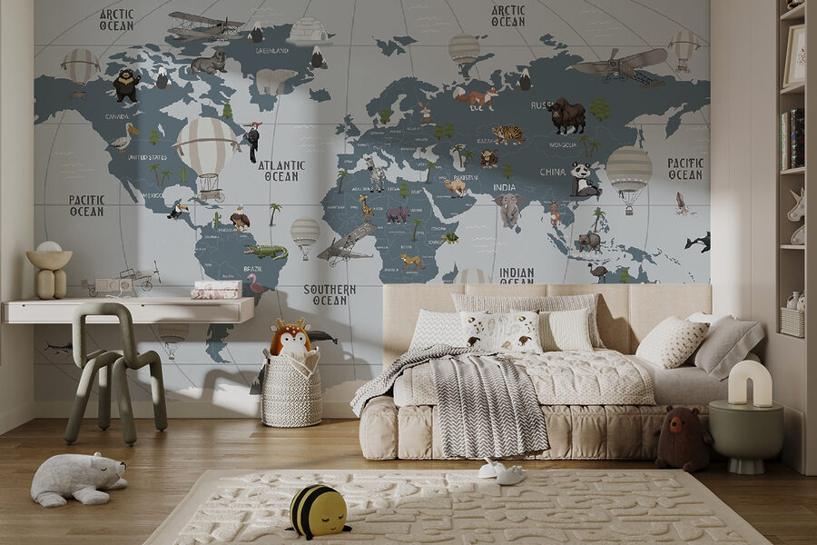 Stellen Sie sich eine Welt vor, in der das Abenteuer hoch aufsteigt, ganz bequem von Ihrem Zimmer aus. Dieses Wandbild “Hot Air Balloon in the Sky” ist wie eine Eintrittskarte ins Fernweh, perfekt für kleine Entdecker und Tagträumer gleichermaßen. Mit den charmanten Heißluftballons, die über einer verspielten Landkarte schweben, können Kinder den Globus bereisen, ohne jemals eine Tasche zu packen. Stellen Sie sich Kichern und Begeisterung vor, wenn sie auf Dschungel, Ozeane und pelzige Freunde zeigen. Das ist nicht nur Dekoration, sondern eine inspirierende Kulisse für Geschichten, Lachen und eine Prise Fantasie. Die Wände werden zu Fenstern in ferne Länder, und wer würde das nicht lieben? Perfekt für ein Kinderzimmer oder ein Spielzimmer, verleiht es Wärme und Laune. Die Abenteuer können beginnen!