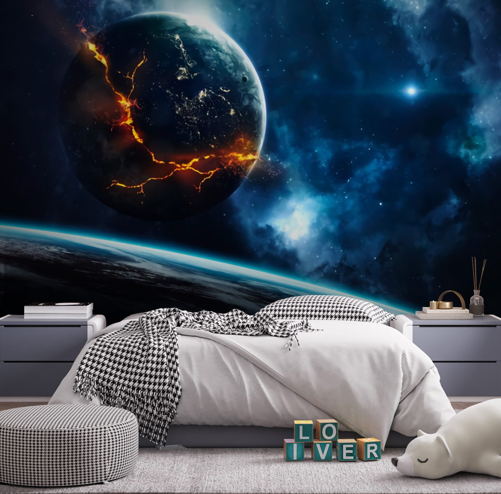 Stellen Sie sich vor, Sie wachen jeden Tag mit dieser atemberaubenden kosmischen Szene auf – wie cool ist das denn? Unsere Fototapete “Planet mit Feuer im Hintergrund” bringt die dramatische Schönheit einer Galaxie direkt in Ihr Wohnzimmer (oder Ihr Büro, oder wo auch immer Sie einen Hauch von himmlischem Flair hinzufügen möchten). Diese Fototapete ist nicht nur atemberaubend lebendig – sie wirkt fast lebendig mit dem feurigen Planeten, der sich von den tiefen, geheimnisvollen Blautönen der Galaxie abhebt. Es ist wie ein Fenster in ein anderes Universum, das Staunen, Neugier und vielleicht auch ein wenig Tagträumen von fernen Abenteuern hervorruft. Ganz gleich, ob Sie ein Astronomie-Fan sind oder einfach nur eine Vorliebe für mutige, einzigartige Dekoration haben, dieses Stück wird garantiert für Gesprächsstoff sorgen. Vielleicht fühlen sich Ihre Gäste sogar ein bisschen mehr mit dem Kosmos verbunden. Und mal ehrlich, wer könnte nicht ein bisschen mehr Magie in seinem Leben gebrauchen? Perfekt für alle, die die ehrfurchtgebietende Weite des Weltraums mit einem Hauch von Feuer zu schätzen wissen!