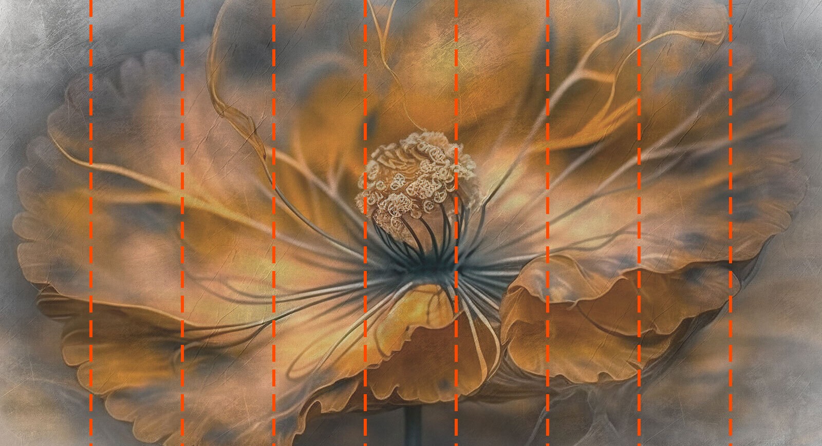 Ihre Tapete wird nach den von Ihnen während des Bestellvorgangs angegebenen Maßen angefertigt. Die Leinwand wird in praktische Abschnitte von jeweils bis zu 50 cm Breite unterteilt.