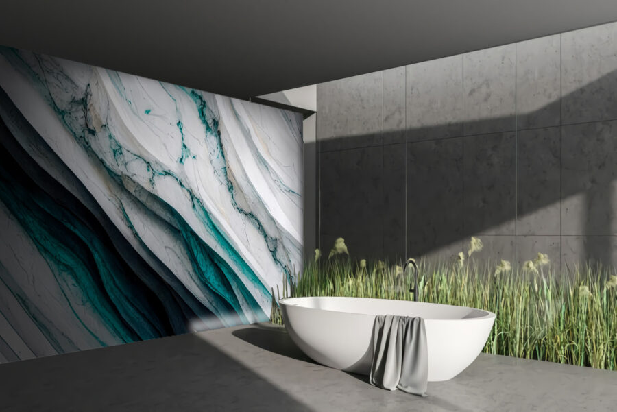 Stellen Sie sich vor: ein Raum, der sich sofort lebendiger anfühlt, dank der “Fototapeten Turquoise and White Flowing Layers”. Diese Fototapete ahmt die ruhige Bewegung der Meereswellen nach und wirbelt in sanften, beruhigenden Türkis- und Weißtönen. Es ist, als ob man eine sanfte Meeresbrise in seinen Raum einlädt. Stellen Sie sich vor, Sie nippen an einer Tasse Kaffee, betrachten diese fließenden Schichten und spüren, wie all Ihre Sorgen davonfliegen. Er eignet sich perfekt für ein gemütliches Wohnzimmer oder ein ruhiges Schlafzimmer und bringt genau den richtigen Hauch von Eleganz und Wärme mit, der jeden Tag zu etwas Besonderem macht. Wer würde das nicht wollen? Außerdem ist es ein echter Gesprächsanlass – jeder wird sich fragen, woher diese schöne Stimmung kommt.