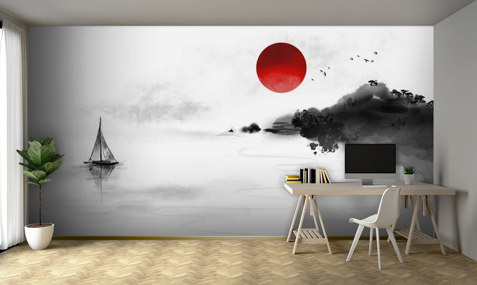 Stellen Sie sich vor, Sie betreten einen Raum und werden von einer so friedlichen Szene begrüßt – diese verträumte Fototapete zeigt einen roten Kreis vor einem ruhigen weißen Hintergrund. Es ist wie Ihr eigenes kleines Stück Zen-Kunst. Die kräftige rote Sonne hebt sich markant ab und bietet einen belebenden Farbklecks, der kaum zu übersehen ist. Zusammen mit der sanften, nebligen Landschaft ergibt sich ein perfektes Gleichgewicht zwischen Ruhe und Lebendigkeit.