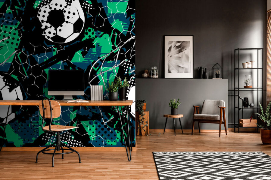 Hallo zusammen! Willst du deinen Raum mit etwas Ausgefallenem aufpeppen? Dann solltest du dir diese Fototapete “Abstraktes Fußballmuster mit Sechsecken” ansehen – sie bietet die perfekte Mischung aus Kunst und Sport. Die verrückten geometrischen Muster und die auffälligen Fußballaufdrucke bringen viel Energie in jeden Raum.