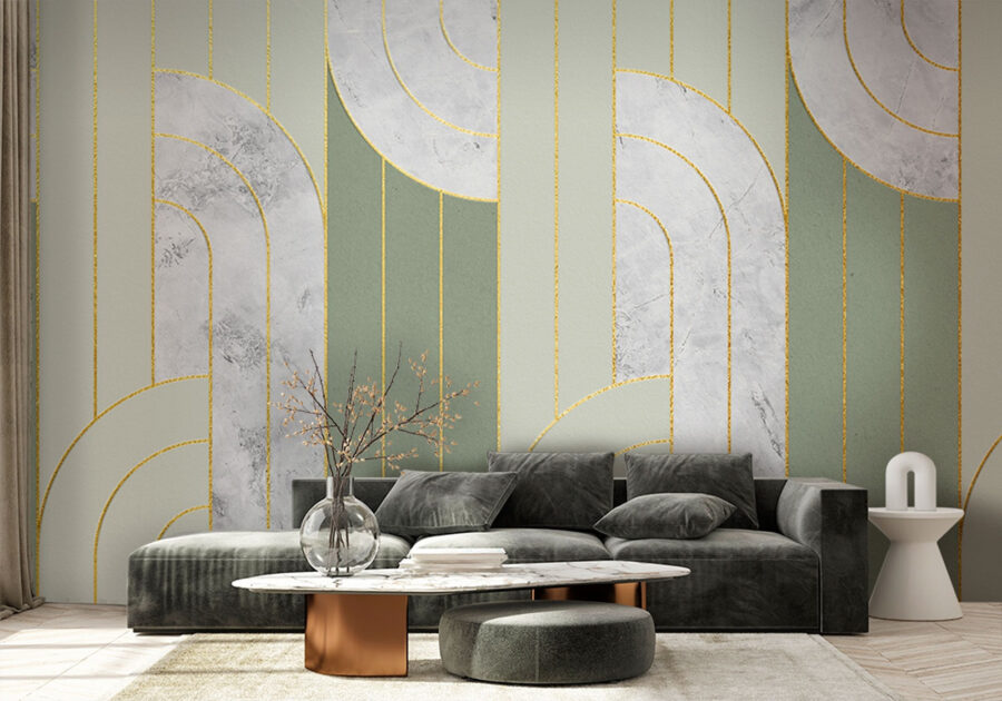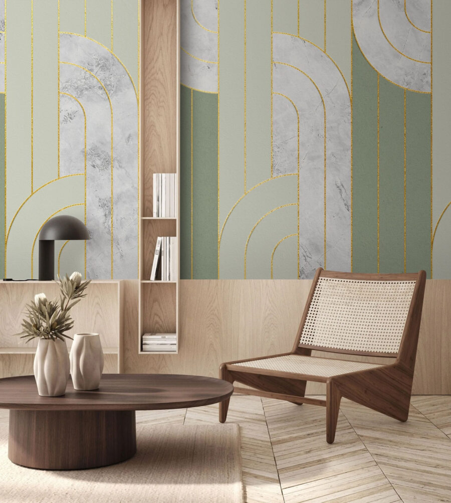 Mit diesem Wandbild mit eleganten Mustern und beruhigenden Farben verwandeln Sie jeden Raum. Stellen Sie sich vor, Sie betreten einen Raum, in dem die weichen, fließenden Linien über die Wände tanzen und eine Atmosphäre der Ruhe schaffen. Es ist wie ein frischer Wind in Ihrem Zuhause. Ganz gleich, ob Sie sich mit einem Buch zurücklehnen oder Freunde einladen, diese Fototapete zieht die Blicke auf sich, ohne zu sehr aufzufallen. Stellen Sie es sich in einer gemütlichen Ecke oder als beeindruckende Kulisse in Ihrem Wohnzimmer vor. Es lädt dazu ein, die Seele baumeln zu lassen, einen Tee zu trinken und einfach die Schönheit der Umgebung zu genießen – perfekt, um gute Gespräche zu führen.