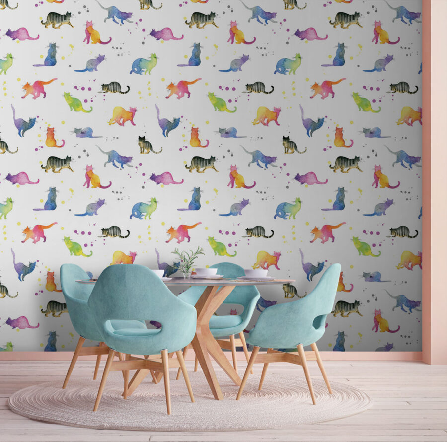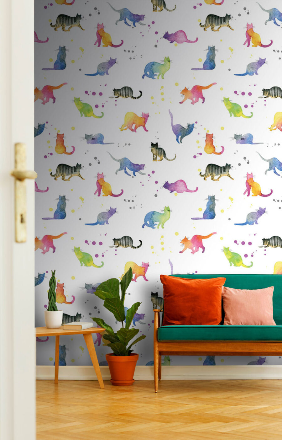 Verwandeln Sie jede Wand in einen fantasievollen Dschungel aus Aquarellkatzen, der selbst die mürrischsten Katzen zum Schnurren bringt! Diese Wandtapete strotzt nur so vor Farben und Katzencharme und kombiniert verspielte Schnurrhaare mit koketten Schwänzen. Stellen Sie sich vor, Sie betreten einen Raum, in dem Sie mit jedem Blick einen neuen Katzenfreund entdecken, der bereit ist, Ihren Tag zu verschönern. Die Mischung aus sanften Farbtönen strahlt Ruhe aus und eignet sich perfekt für eine gemütliche Leseecke oder ein originelles Kinderzimmer. Es ist, als würde man täglich mit Kätzchen kuscheln – ganz ohne Katzentoilette! Egal, ob Sie Katzenliebhaber sind oder einfach nur Spaß an ausgefallener Dekoration haben, diese Tapete wird jeden begeistern, der vorbeikommt.