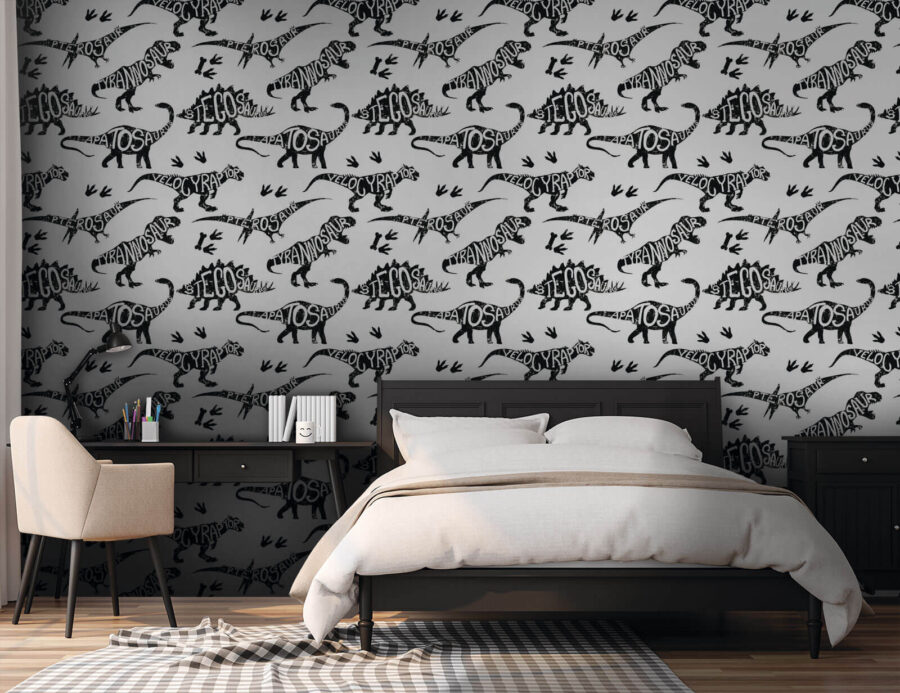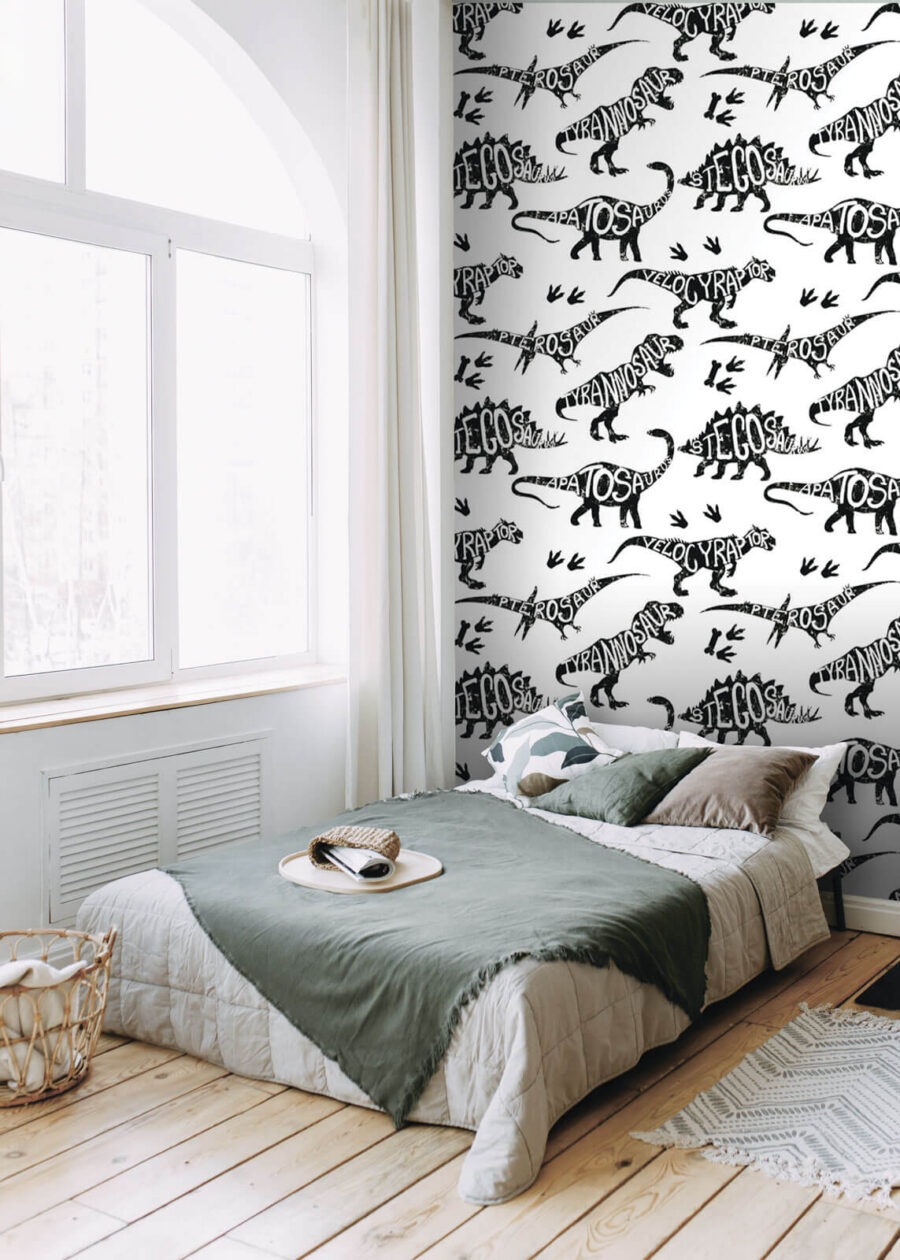 Verwandeln Sie jeden Raum in einen prähistorischen Spielplatz mit dieser auffälligen Dinosaurier-Wandtapete. Stellen Sie sich vor, Sie betreten eine Welt, in der T-Rex brüllt und Velociraptoren herumstolzieren! Diese Tapete ist nicht nur für Kinder geeignet, sondern regt die Fantasie aller an und weckt das Abenteuergefühl. Die verspielte Mischung aus Dinosauriern und lustigen Worten macht sie perfekt für Kinderzimmer, Spielzimmer oder sogar eine ausgefallene Ecke im Wohnzimmer.