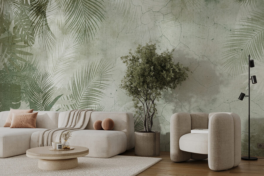 Verwandeln Sie Ihren Raum mit diesem entzückenden Wandbild mit tropischen Blättern, die sich auf einem weichen, strukturierten Hintergrund ausbreiten. Stellen Sie sich vor, Sie betreten einen Raum, in dem Sie sich sofort wie in einem Inselparadies fühlen – es ist, als ob Sie ein kleines Stück Natur ins Haus holen. Die subtilen Grün- und Erdtöne schaffen eine einladende Atmosphäre, die Ihnen das Gefühl gibt, unter Palmen zu entspannen. Dieses Wandbild eignet sich perfekt für eine gemütliche Leseecke oder einen belebten Wohnbereich. Es lädt zu entspannenden Momenten ein und inspiriert zu Tagträumen von Abenteuern in der Sonne. Verschönern Sie Ihre Wände und lassen Sie die beruhigende Essenz der Tropen in Ihrem Zuhause erblühen. Wer hätte gedacht, dass eine Fototapete all das leisten kann?