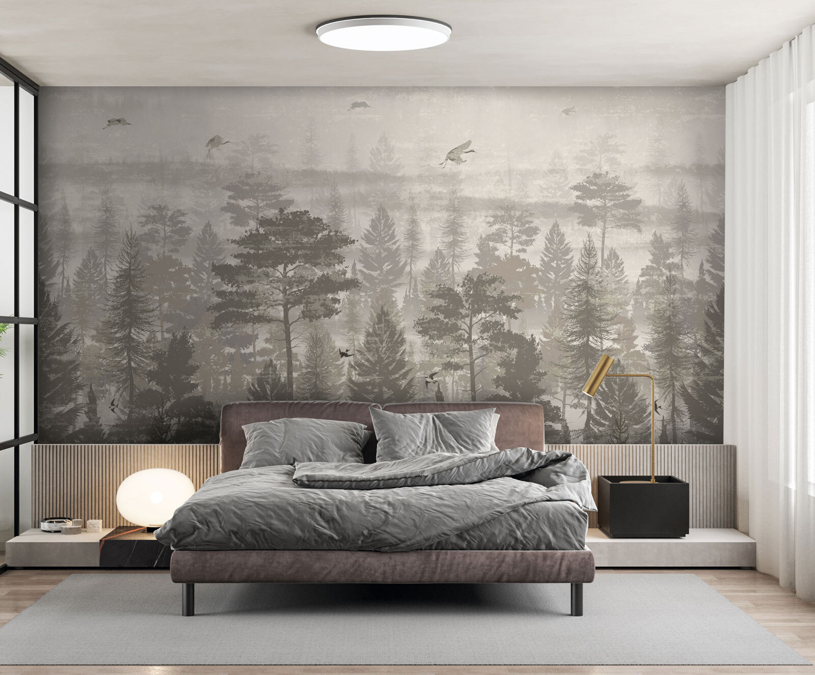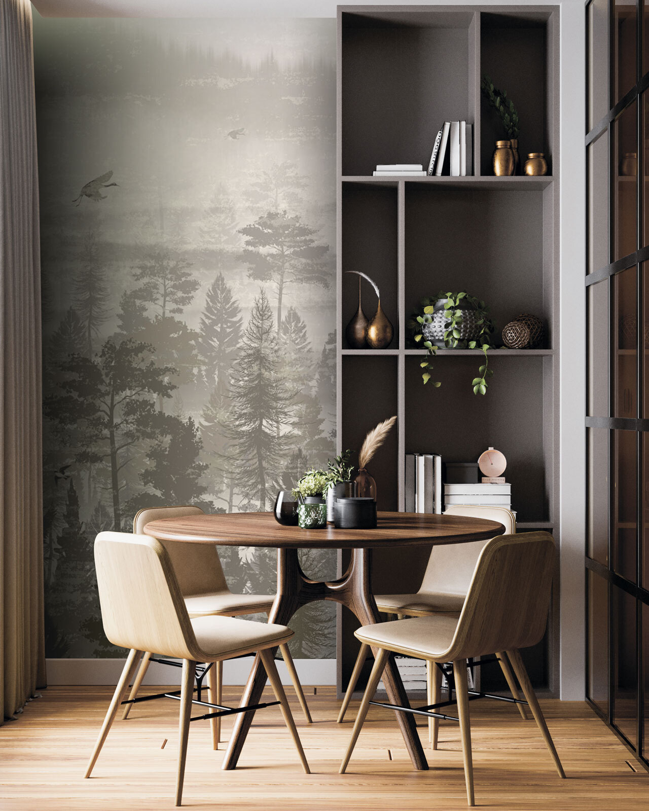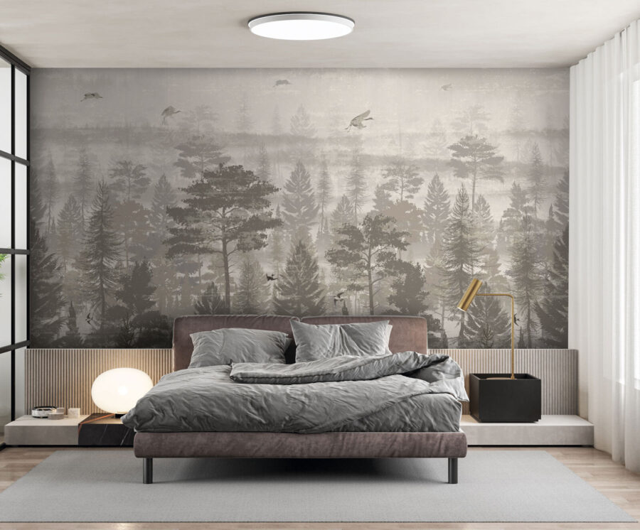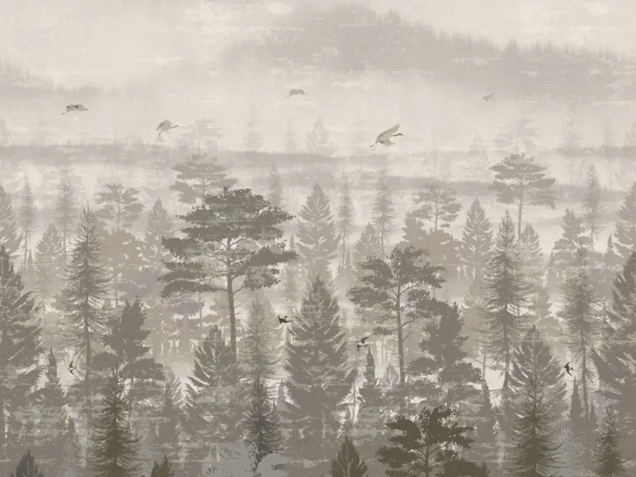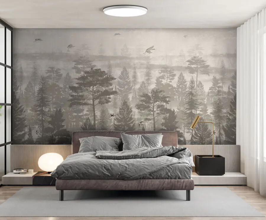 Verwandeln Sie Ihren Raum mit diesem atemberaubenden Wandbild von Vögeln, die über einen ruhigen Wald fliegen. Es ist, als hätten Sie ein Stück Natur direkt in Ihrem Wohnzimmer – natürlich ohne die Mücken. Die sanften, gedeckten Farben strahlen eine beruhigende Atmosphäre aus und bilden den perfekten Hintergrund für gemütliche Momente, egal ob Sie Kaffee trinken oder in ein gutes Buch eintauchen. Stellen Sie sich vor, Sie wachen mit diesem ruhigen Anblick auf, bei dem jeder Blick wie eine kleine Flucht in den Wald wirkt. Es ist genau das Richtige für diejenigen, die einen Hauch von Abenteuer gemischt mit einem Spritzer Eleganz lieben. Perfekt für jeden Naturliebhaber oder jeden, der bereit ist, seine Einrichtung aufzuwerten!