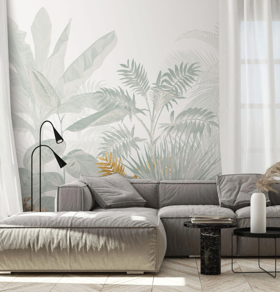 Verwandeln Sie jeden Raum in einen tropischen Urlaubsort mit dieser atemberaubenden Fototapete mit üppigen, verträumten Blättern, die praktisch flüstern: “Come relax!” Stellen Sie sich vor, Sie wachen jeden Tag vor dieser heiteren Kulisse auf – es ist, als wären Sie in einem nicht enden wollenden Urlaub. Die gedämpften Töne schaffen eine beruhigende Atmosphäre, die perfekt ist, um sich nach einem langen Tag zu entspannen. Ihre Freunde könnten sogar denken, dass Sie einen geheimen Garten versteckt haben. Diese Fototapete ist ideal für eine gemütliche Leseecke oder ein fröhliches Wohnzimmer und verbindet Natur mit Stil. Stellen Sie sich vor: Sie nippen an einem Getränk, üppiges Grün umgibt Sie, und alle Ihre Sorgen sind wie weggeblasen. Pure Glückseligkeit, oder?