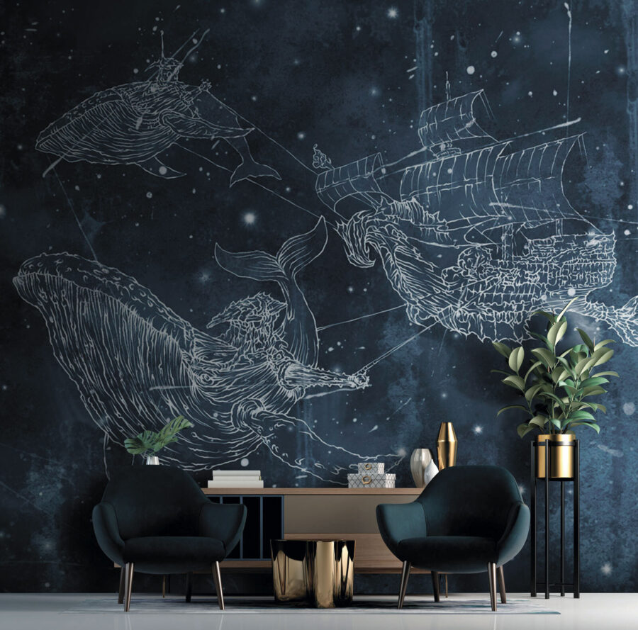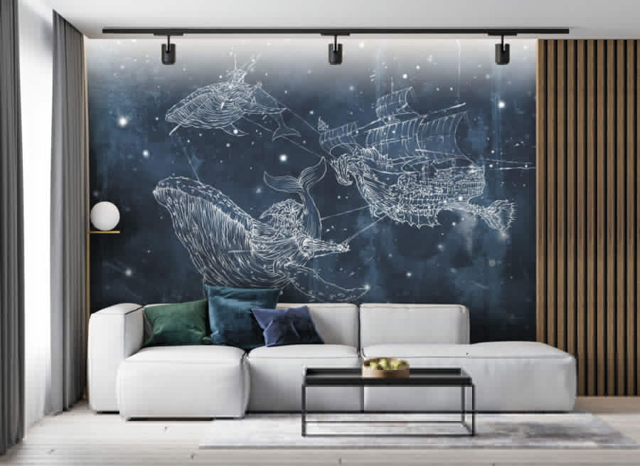 Stellen Sie sich vor, Sie wachen auf und ein Wal singt Ihnen von Ihrer Wand aus ein Ständchen! Dieses Wandbild “Drawing of a Whale” ist wie ein Eintauchen in ein magisches Meer – keine gewöhnliche Wanddekoration. Perfekt für Kinder, die von maritimen Abenteuern träumen, und für jung gebliebene Erwachsene, die ihrem Raum einen Hauch von ozeanischem Wunder verleihen wollen. Eine Mischung aus Sternen, Walen und einem geheimnisvollen Schiff segelt durch die blaue Dämmerung und schafft eine skurrile Nachtlandschaft. Es ist wie eine lebendig gewordene Gute-Nacht-Geschichte. Lassen Sie sich von dieser bezaubernden Szene ins Traumland entführen oder setzen Sie in jedem Raum die Segel auf einer Welle der Kreativität und des Staunens. Segeln Sie los!