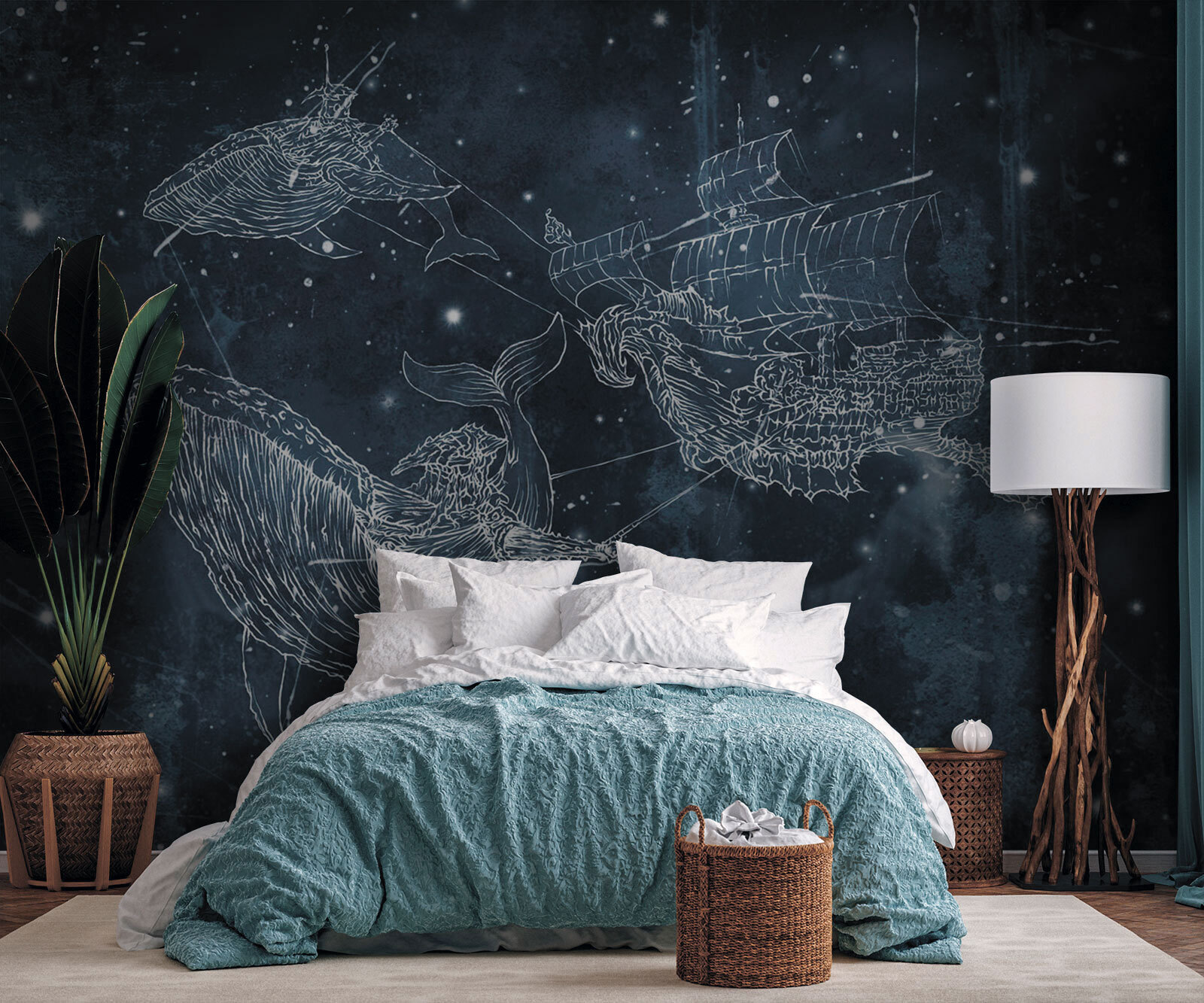Stellen Sie sich vor, Sie wachen auf und ein Wal singt Ihnen von Ihrer Wand aus ein Ständchen! Dieses Wandbild “Drawing of a Whale” ist wie ein Eintauchen in ein magisches Meer – keine gewöhnliche Wanddekoration. Perfekt für Kinder, die von maritimen Abenteuern träumen, und für jung gebliebene Erwachsene, die ihrem Raum einen Hauch von ozeanischem Wunder verleihen wollen. Eine Mischung aus Sternen, Walen und einem geheimnisvollen Schiff segelt durch die blaue Dämmerung und schafft eine skurrile Nachtlandschaft. Es ist wie eine lebendig gewordene Gute-Nacht-Geschichte. Lassen Sie sich von dieser bezaubernden Szene ins Traumland entführen oder setzen Sie in jedem Raum die Segel auf einer Welle der Kreativität und des Staunens. Segeln Sie los!
