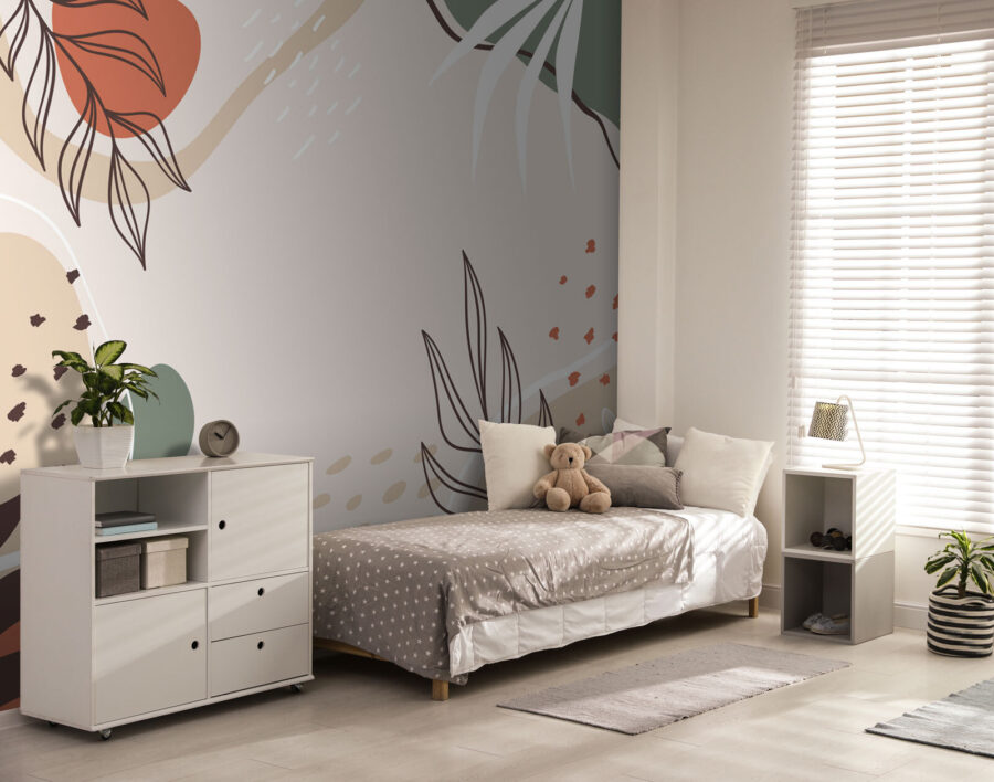 Kennen Sie das Gefühl von Ruhe und Kreativität, das Sie bei einem Spaziergang in der Natur verspüren? Stellen Sie sich vor, Sie könnten dieses Gefühl in Flaschen abfüllen und es direkt an Ihre Wände bringen. Das ist es, was dieses Wandbild “Abstrakte Blätter und Formen” bewirkt. Es ist wie ein Hauch von frischer Luft, nur eben in Innenräumen. Die fließenden Linien und organischen Formen sind einfach so beruhigend für das Auge – perfekt, um jede schlichte Wand in eine kleine Oase zu verwandeln.