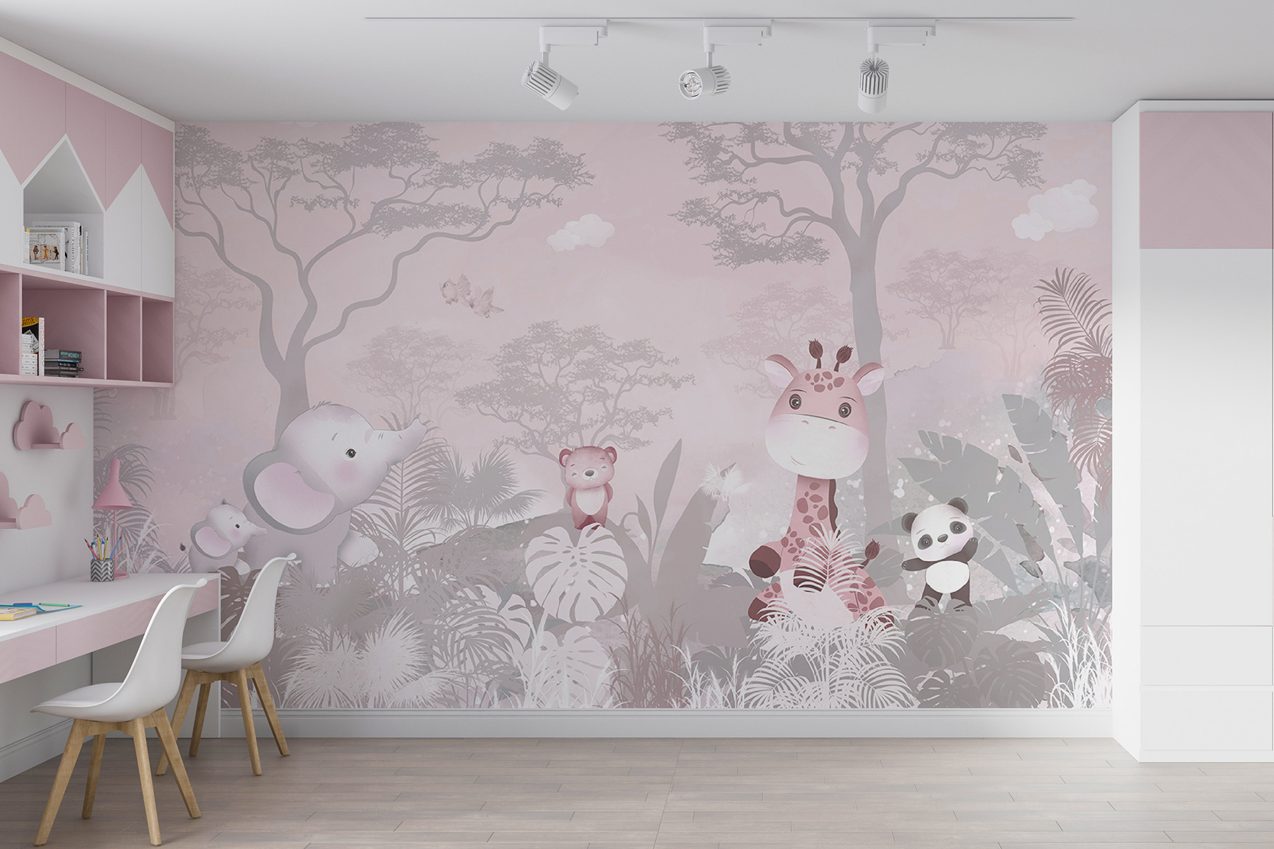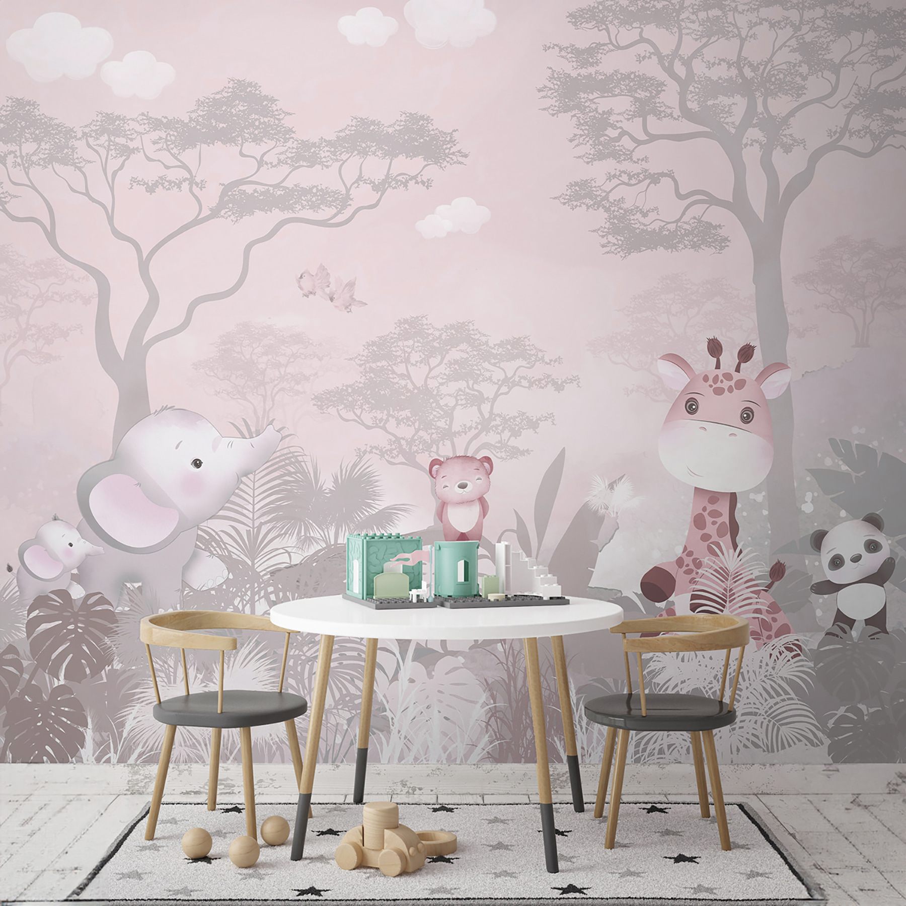 Stellen Sie sich vor: Ihr Kind wacht jeden Morgen mit einem fröhlichen rosa Bären, einer verträumten Giraffe und einem winzigen Panda auf – was für eine Art, den Tag zu beginnen! Egal, ob Sie ein Kinderzimmer oder ein Spielzimmer umgestalten oder sogar das Zimmer eines Teenagers verschönern wollen, dieses Wandbild zaubert ein Lächeln ins Gesicht. Es ist, als ob die Wände sanfte Abenteuer flüstern und die Fantasie anregen würden.