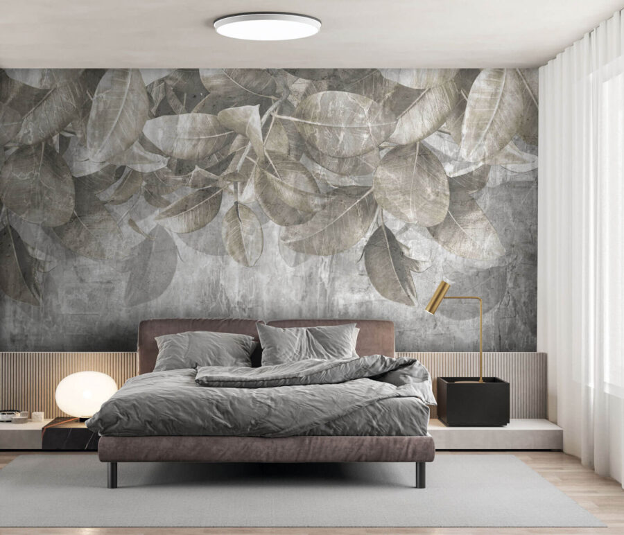 Verwandeln Sie Ihren Raum in einen ruhigen Zufluchtsort mit dieser Fototapete, die gedämpfte Blätter vor einem sanften Hintergrund zeigt. Stellen Sie sich vor, Sie betreten einen gemütlichen Raum, der sich fast wie ein ruhiger Wald anfühlt, in dem die natürliche Welt auf Ihre Wände trifft. Diese Fototapete hüllt Sie in sanftes Grün, ohne die Sinne zu überwältigen – perfekt für die Ecke, in der Sie Ihren Morgenkaffee trinken oder sich mit einem guten Buch einkuscheln.