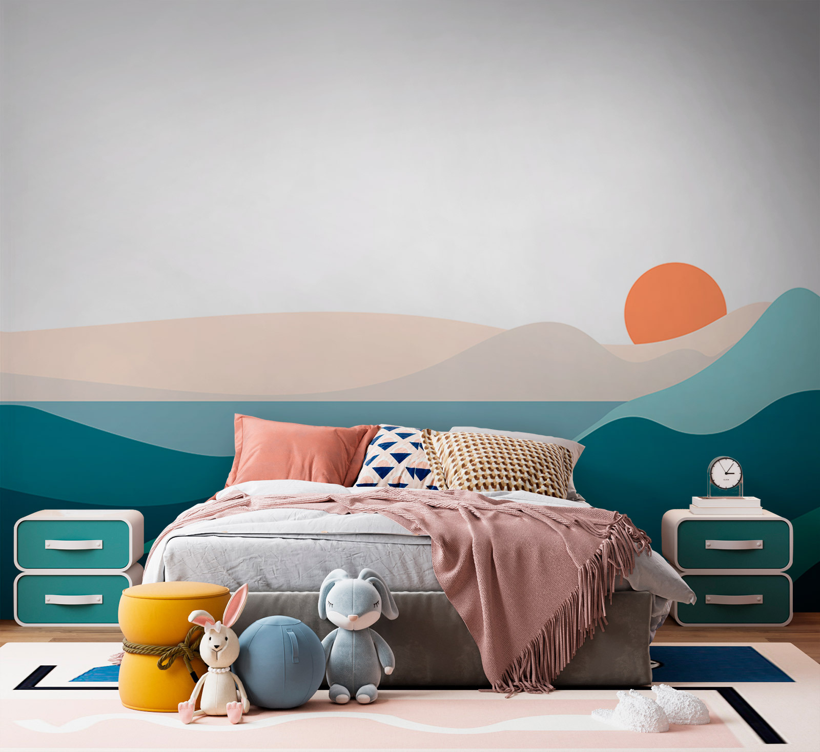 Verwandeln Sie Ihren Raum mit dieser atemberaubenden Wandtapete „Landschaft mit Bergen und Sonnenuntergang“. Stellen Sie sich vor, Sie betreten einen Raum und plötzlich sehen Sie majestätische Berge, die einen ruhigen Sonnenuntergang umarmen. Es ist, als würde die Natur Sie rufen, ohne dass Sie Ihre Wanderschuhe schnüren müssen. Die sanften Farben wirken beruhigend und eignen sich perfekt für eine gemütliche Leseecke oder einen stilvollen Wohnbereich. Stellen Sie sich vor, Sie machen es sich mit einem warmen Getränk gemütlich, während die Tapete Sie mit ihrer ruhigen Ausstrahlung umhüllt. Sie erinnert Sie täglich an die Schönheit der Natur – ohne Insekten und ohne Schlamm. Jedes Mal, wenn Sie einen Blick darauf werfen, schleicht sich ein wenig Frieden in Ihren Tag.