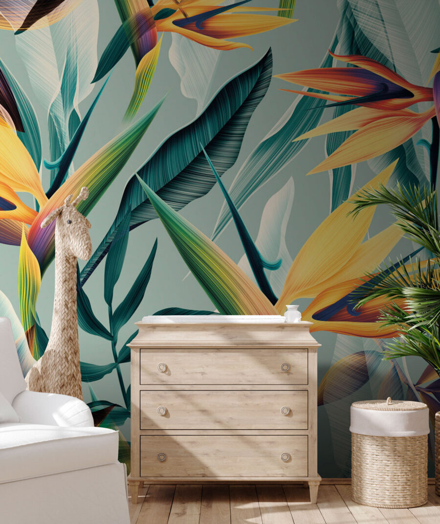 Haben Sie ein Faible für einzigartige Dekoration? Dann sollten Sie sich das Wandgemälde “Birds of Paradise” ansehen. Das ist nicht nur ein Stück, sondern ein Erlebnis – wie ein Schritt in ein lebendiges Dschungelparadies. Stellen Sie sich vor, Sie wachen jeden Tag mit diesen faszinierenden Farben und dem filigranen Blattwerk auf! Das Wandbild ist Teil unserer Designer-Tapeten-Kollektion, die moderne Kunst mit der wilden Schönheit der Natur verbindet.