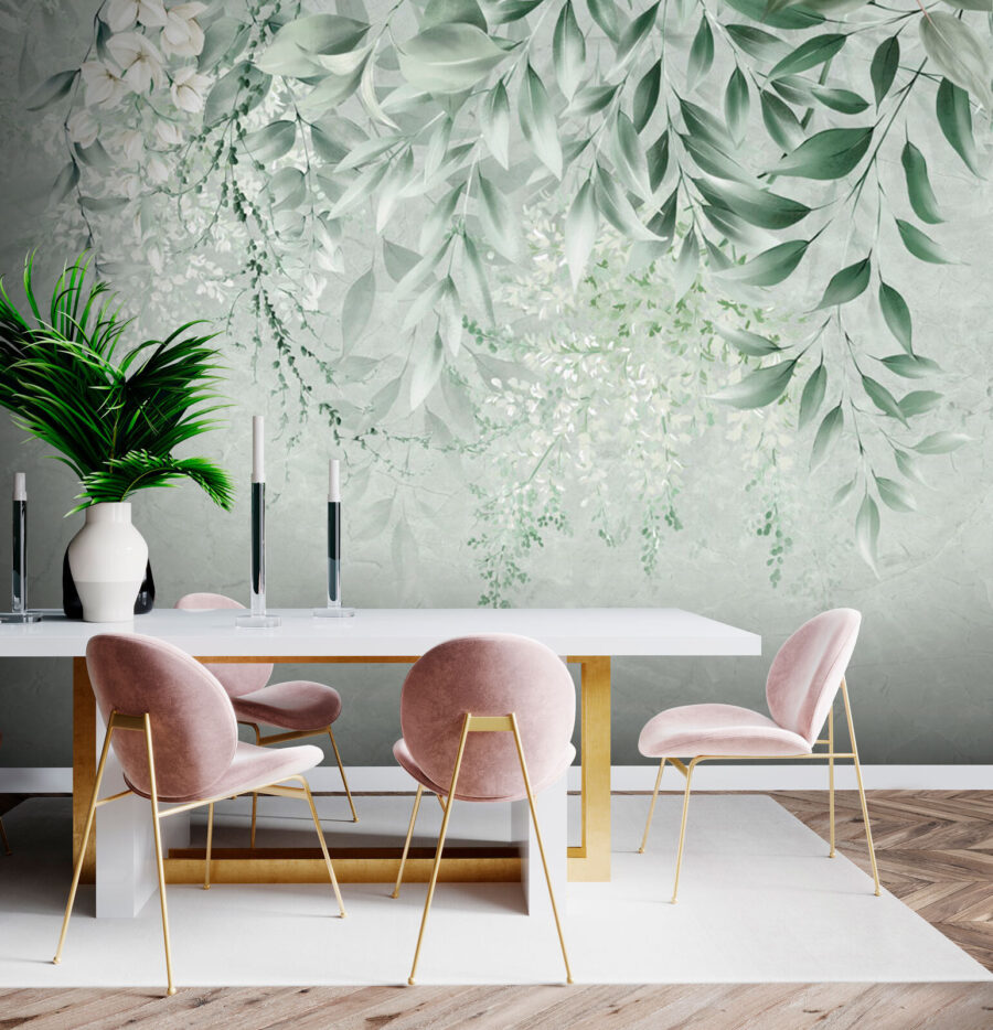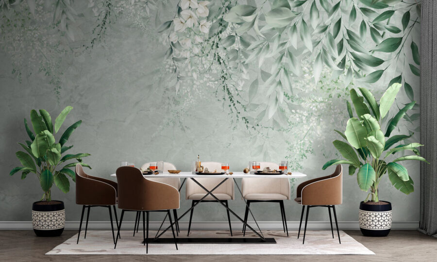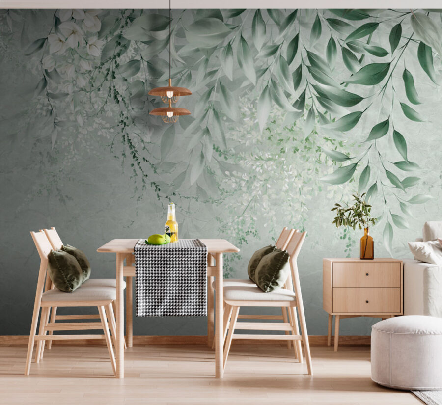 Verwandeln Sie jeden Raum mit der bezaubernden Fototapete “Floral Elegance with Subtle Leaves”. Stellen Sie sich vor, dass Sie jedes Mal, wenn Sie den Raum betreten, in eine heitere Oase eintreten. Diese Fototapete mit sanftem Grün und zarten Blüten schafft eine beruhigende Kulisse, die sich einfach richtig anfühlt – fast wie eine sanfte Umarmung der Natur. Es eignet sich perfekt für eine gemütliche Leseecke oder sogar über dem Esstisch und regt zu Gesprächen und vielleicht auch zu Tagträumen über einen Spaziergang durch einen üppigen Garten an. Es ist nicht nur Dekoration, sondern lädt zu Wärme und Gelassenheit ein und lässt jeden, der es sieht, für einen Moment innehalten. Wer wünscht sich nicht ein kleines Stückchen Ruhe zu Hause?