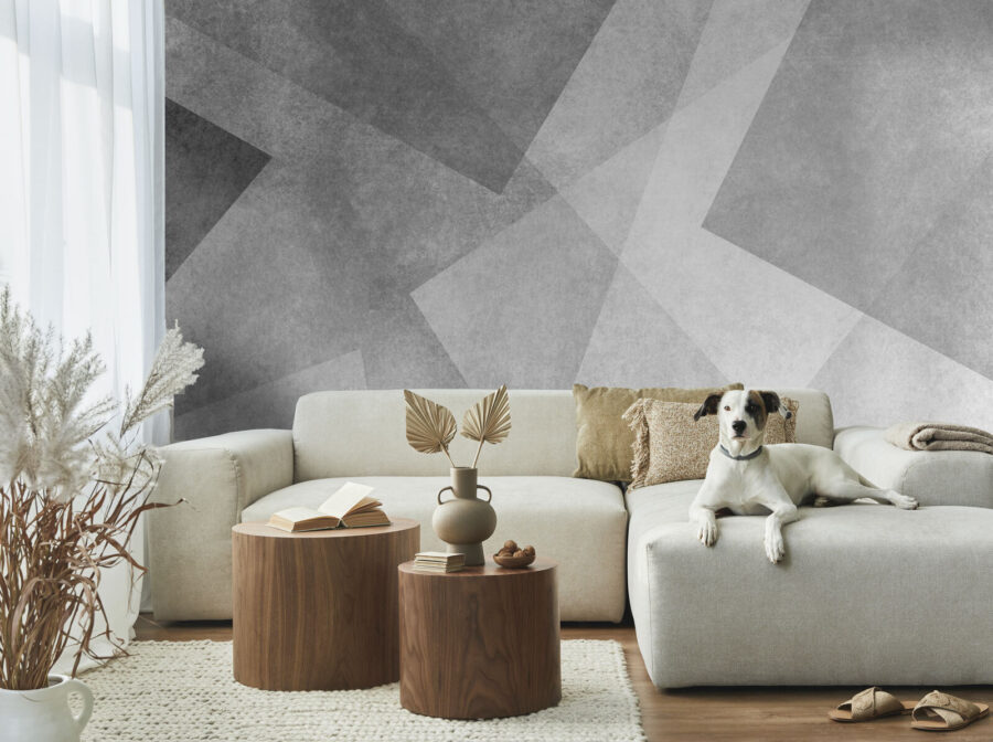 Die kontrastierenden Töne und Formen ziehen die Blicke auf sich, ohne die Sinne zu überwältigen. Es ist eher ein leises Flüstern von Kunst als ein lautes Schreien. Ihre Freunde werden Sie wahrscheinlich fragen, woher Sie die Tapete haben, denn sie verleiht Ihrem Zimmer eine ganz neue Dimension – im wahrsten Sinne des Wortes. Es ist eine Designertapete, die einfach und doch bemerkenswert raffiniert ist. Wenn du also auf einzigartige Dekoration stehst, die Charakter und einen Hauch von Geheimnis verleiht, ohne zu laut zu sein, könnte dieses Wandbild dein nächstes Lieblingsstück an der Wand sein.
