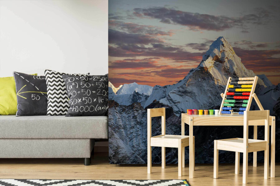 Verwandeln Sie Ihren Raum mit dieser atemberaubenden Wandtapete in einen gemütlichen Rückzugsort in den Bergen. Stellen Sie sich vor, Sie wachen mit dem ruhigen Anblick schneebedeckter Gipfel auf, die im sanften Schein der aufgehenden Sonne baden – was für ein Start in den Tag! Diese Wanddekoration füllt nicht nur einen Raum, sondern lädt gleichzeitig zu Abenteuern und Ruhe ein. Ihre Freunde werden sich fragen, ob Sie heimlich den Himalaya bestiegen haben – nein, es ist nur eine clevere Dekoration! Die kühlen Farben beruhigen die Seele, während die majestätischen Berge Tagträume von wilden Abenteuern wecken. Wer würde sich nicht gerne täglich daran erinnern lassen, die freie Natur zu genießen, selbst wenn man es sich zu Hause gemütlich gemacht hat? Perfekt für alle, die sich nach einem Stück Natur mit einem Hauch von Wunder sehnen.