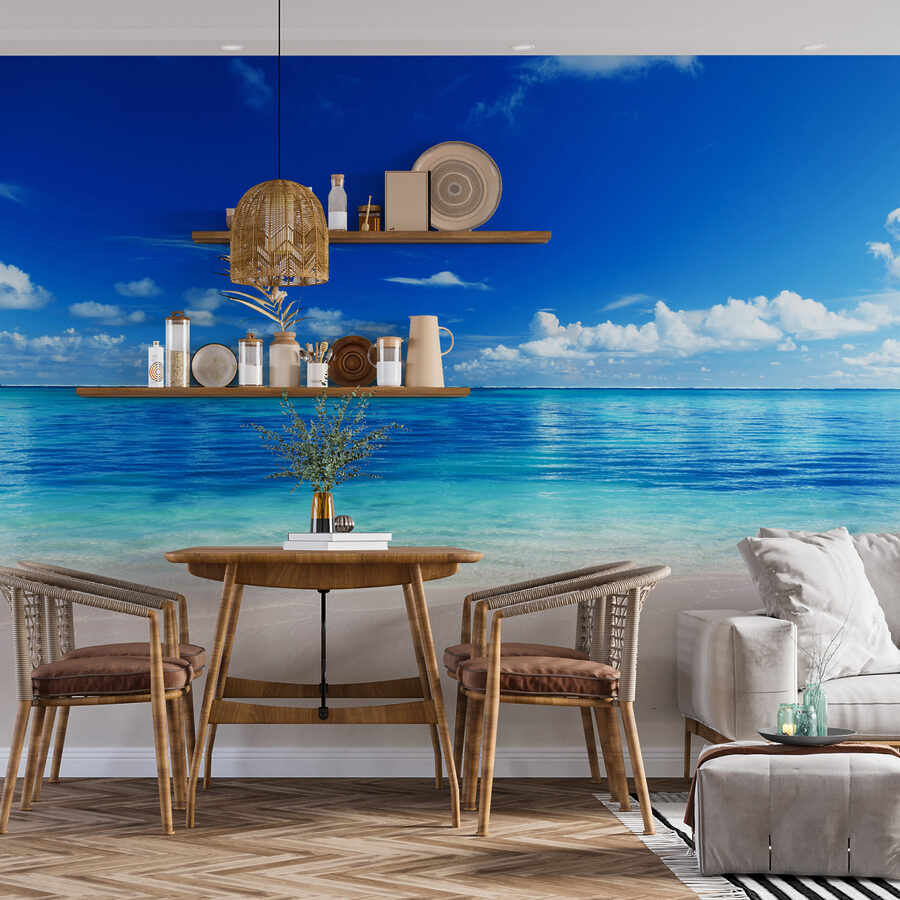 Haben Sie schon einmal davon geträumt, ein Stückchen Paradies direkt in Ihrem Wohnzimmer zu haben? Diese Fototapete mit dem treffenden Namen “Blue Sky with Clouds” könnte genau das Richtige für Sie sein. Stellen Sie sich vor, Sie blicken von Ihrer Couch auf und werden sofort an einen ruhigen Ort am Meer versetzt – das sanfte Plätschern der Wellen, der azurblaue Himmel mit flauschigen Wolken. Jedes Mal, wenn Sie einen Blick auf Ihre Wand werfen, ist es wie ein kleiner Urlaub. Perfekt, um jedem Raum einen Hauch von Ruhe zu verleihen, egal ob es sich um eine gemütliche Leseecke oder einen belebten Essbereich handelt. Stellen Sie sich vor, Freunde kommen zu Besuch und fühlen sich sofort wie in einer Strandkabine. Atmen Sie ein, atmen Sie aus und lassen Sie die Ruhe auf sich wirken – ganz ohne Sand in den Schuhen!