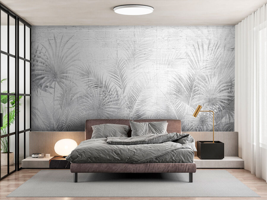 Möchten Sie Ihren Raum aufpeppen? Sehen Sie sich diese schicke “Graue und weiße Tapete mit Palmenblättern” an. Sie hat diese coole, entspannte Ausstrahlung, die trotzdem total schick ist. Die Mischung aus Grau und Weiß ist sehr vielseitig und lässt sich mit so ziemlich allem kombinieren, was du schon hast. Und diese zarten Palmenblätter? Sie verleihen genau den richtigen Hauch von tropischem Flair, ohne zu aufdringlich zu sein. Stellen Sie sich vor, Sie betreten Ihr Zimmer und haben das Gefühl, eine heitere, trendige Oase zu betreten. Diese Fototapete eignet sich ideal für Wohn- und Schlafzimmer oder sogar für ein stilvolles Büro zu Hause und bringt jede Wand zum Strahlen. Es ist, als ob Sie Ihrer Wand einen frischen Wind einhauchen würden. Glauben Sie mir, Sie werden es lieben.