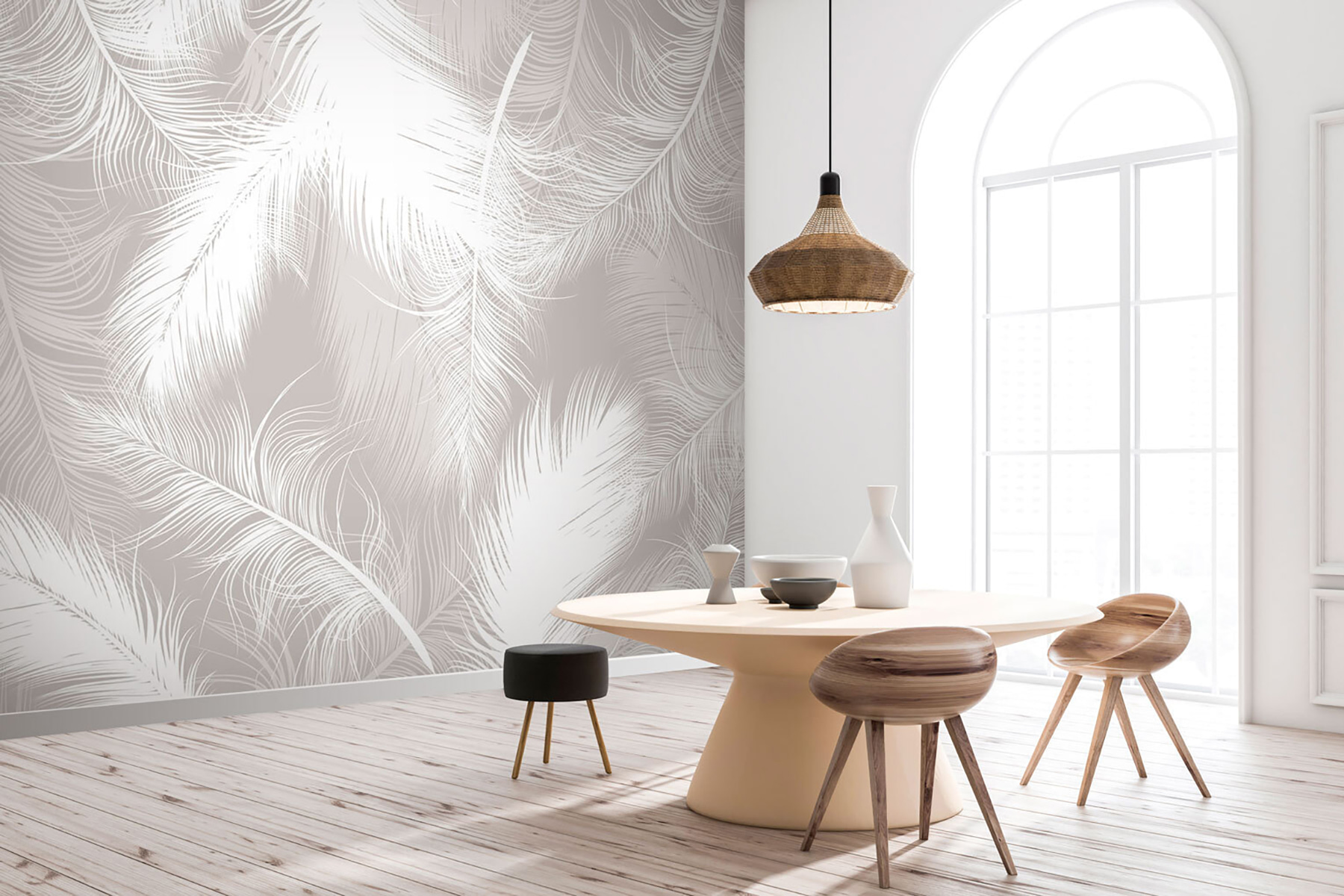 Möchten Sie Ihrem Raum einen Hauch von Eleganz verleihen? Dann sehen Sie sich die Fototapete “Zarte weiße Federn” an. Stellen Sie sich vor, Sie wachen mit diesem Bild auf – weiche, verschlungene Federn, die sanft über Ihre Wand schweben. Es ist, als ob Ihr Zimmer in eine gemütliche, verträumte Wolke gehüllt wäre. Perfekt für einen Rückzugsort im Schlafzimmer oder eine beruhigende Atmosphäre im Wohnzimmer. Jede einzelne Feder scheint mit einem leichten, luftigen Gefühl zu tanzen und verleiht Ihrem Raum sofort mehr Gelassenheit. Egal, ob Sie es sich mit einem Buch gemütlich machen oder Freunde einladen, diese Fototapete sorgt für die perfekte, entspannte Stimmung. Das warme und skurrile Motiv ist genau das Richtige, um Ihr Zuhause in einen friedlichen Rückzugsort zu verwandeln.