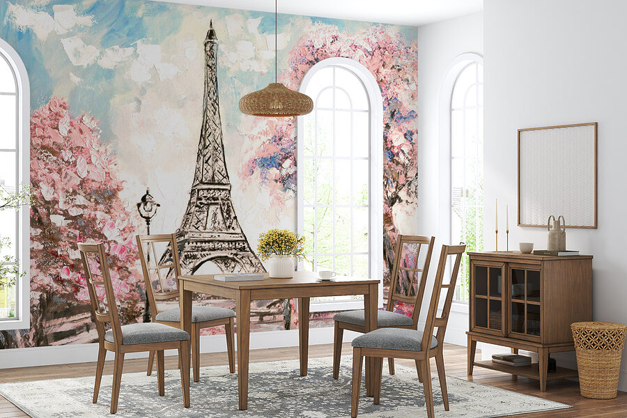 Können Sie sich vorstellen, ein Stück Paris direkt in Ihrem Wohnzimmer zu haben? Die “Fototapeten Paris Romance under Cherry Blossoms” bringen diese verträumte Stimmung direkt an Ihre Wände. Perfekt, um einen Hauch von Romantik und einen Hauch von Eleganz zu vermitteln. Stellen Sie sich vor, Sie spazieren entlang der Seine, Hand in Hand unter blühenden Kirschbäumen. Diese Fototapete fängt diesen magischen Moment ein, der Eiffelturm steht anmutig im Hintergrund. Es ist, als hätte man die Pariser Liebe an die Wand gemalt! Ideal für Wohnräume, die ein wenig Laune und viel Charme brauchen – perfekt für Tagträumer und Verliebte gleichermaßen.