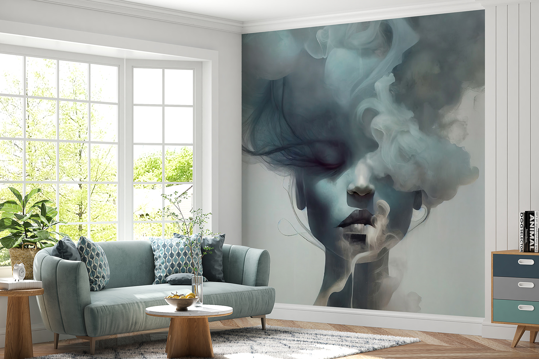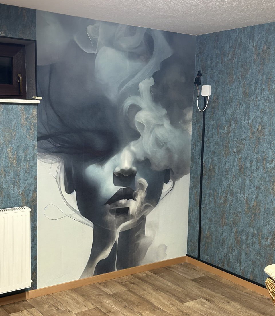 Verwandeln Sie Ihren Raum mit dieser atemberaubenden Fototapete, die das Gesicht einer Frau zeigt, das sanft in ätherischen Rauch gehüllt ist. Stellen Sie sich vor, Sie betreten einen Raum und lassen sich von diesem Kunstwerk in den Bann ziehen – seine geheimnisvolle Ausstrahlung verleiht ihm einen Hauch von Faszination und Ruhe. Die zarte Mischung der Schattierungen schafft eine beruhigende Präsenz und macht es perfekt für eine gemütliche Leseecke oder eine erfrischende Flucht aus dem Alltag.