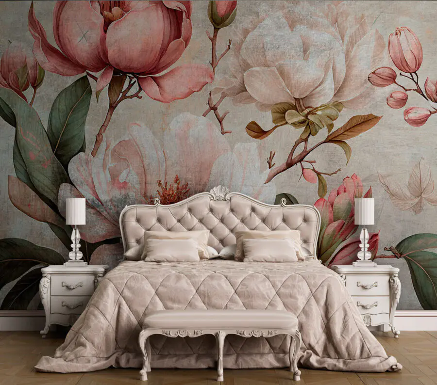 Haben Sie sich jemals vorgestellt, dass Sie jedes Mal, wenn Sie einen Raum betreten, in eine vergangene Ära eintauchen? Das Wandbild “Vintage Floral Magnolia Mural” könnte Sie genau dorthin versetzen. Es ist ein wunderschönes Wandbild, das zarte Pastellblüten mit einem rustikalen, fast verwitterten Hintergrund verbindet. Stellen Sie sich vor, wie Sie in einem sonnenbeschienenen Raum einen Tee trinken, während diese Magnolien Geschichten aus alten Zeiten flüstern. Die subtilen Farben und raffinierten Details lassen das Bild wie ein Stück Geschichte an Ihrer Wand erscheinen. Perfekt für alle, die einen Hauch von Nostalgie in ihrer Einrichtung lieben. Ideal, um eine gemütliche Leseecke zu verschönern oder einen Hauch von Anmut in Ihren Wohnraum zu bringen. Glauben Sie mir, es ist, als hätte man einen ewigen Frühling im Haus – und wer würde sich das nicht wünschen?
