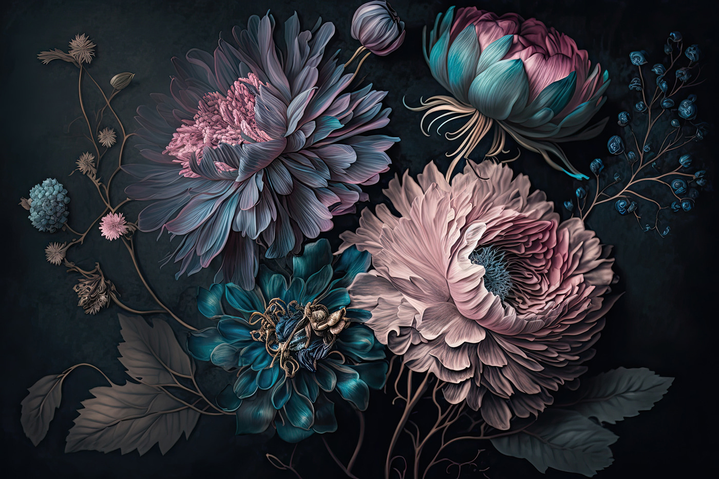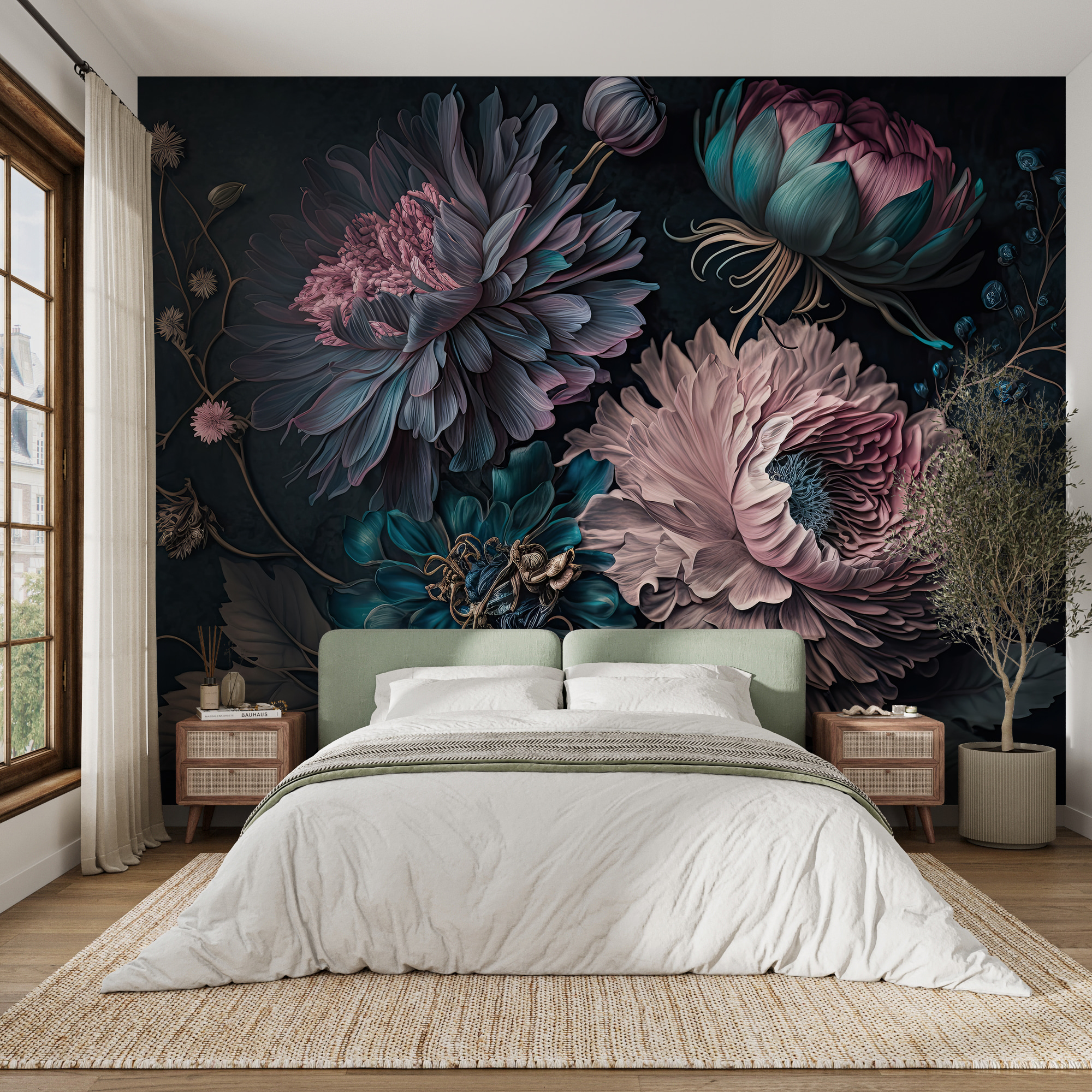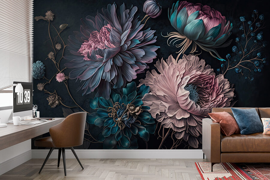 Verwandeln Sie jeden Raum mit dieser atemberaubenden Fototapete, die leuchtende Blumen in einem magischen Arrangement zeigt. Es ist, als ob man einen Garten ins Haus holt, ohne die schmutzige Erde oder lästige Käfer. Stellen Sie sich vor, Sie wachen jeden Tag mit diesen wunderschönen Blüten auf! Die satten Farben schaffen eine gemütliche, einladende Atmosphäre, perfekt für Wohnzimmer oder gemütliche Ecken. Stellen Sie sich vor, Sie haben Freunde zu Gast – alle werden von dieser Wand angezogen und bewundern die verschlungenen Blütenblätter. Damit kommt man sofort ins Gespräch, glauben Sie mir. Dafür braucht man keinen grünen Daumen, sondern nur Liebe zur Schönheit und einen Spritzer Kreativität. Wandkunst war noch nie so lebendig!
