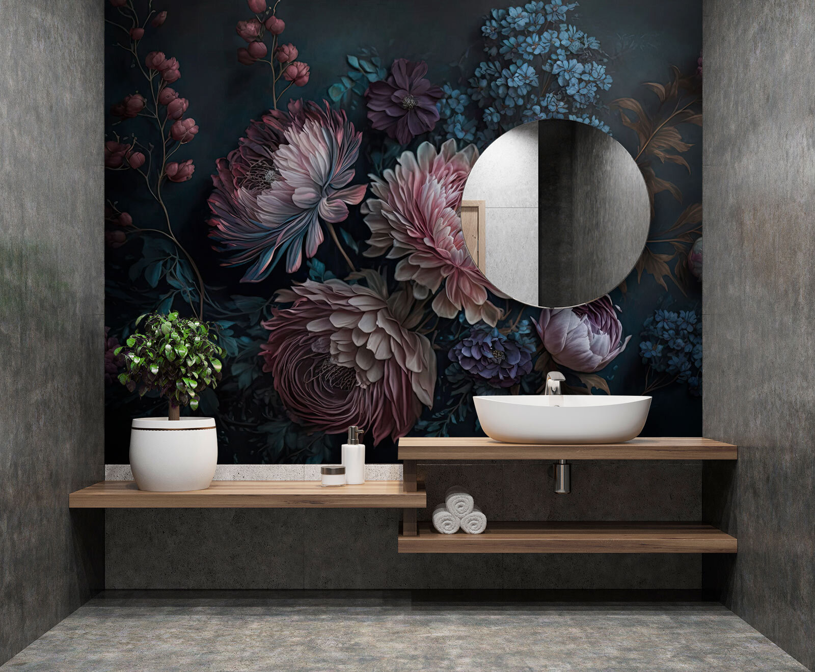 Verwandeln Sie eine langweilige Wand in ein botanisches Wunderland mit dieser lebendigen Blumenwand. Stellen Sie sich üppige Blüten in satten, dunklen Farbtönen vor, die ein gemütliches Ambiente schaffen, das an einen geheimen Garten erinnert – perfekt, um zu träumen oder sich einen ruhigen Moment zu gönnen. Stellen Sie sich vor, Sie veranstalten eine Versammlung, und alle unterhalten sich über diese wunderschönen Blütenblätter. Die Art und Weise, wie die Farben mit dem Licht tanzen, wird Sie dazu verleiten, sich zurückzulehnen und stundenlang Tee zu trinken. Ein toller Gesprächsanlass! Ihre Wände haben ein wenig Liebe verdient, und dieses Wandbild könnte die Eintrittskarte zu einer unerwarteten, schönen Verbindung sein.