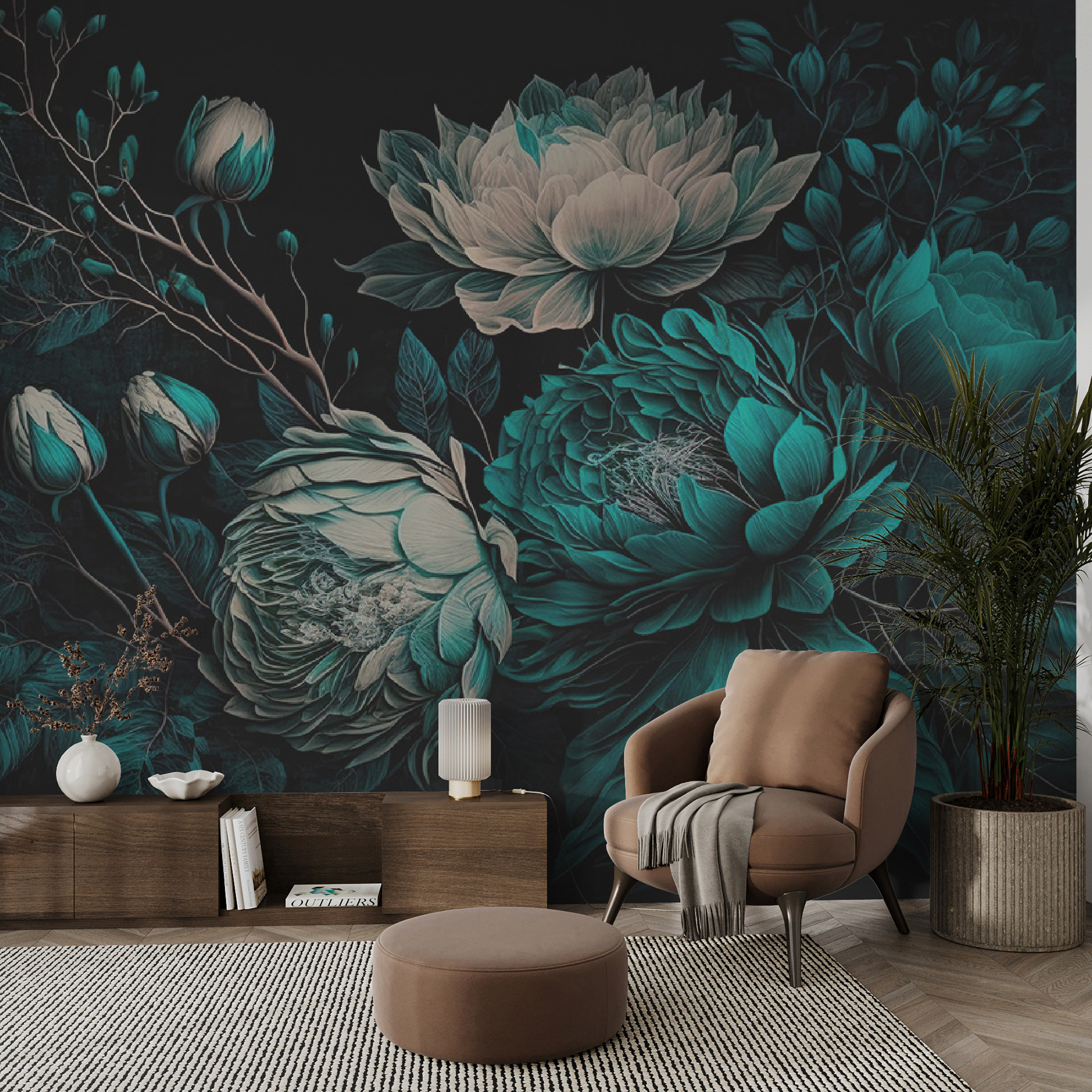 Stellen Sie sich vor, Sie betreten einen Raum, in dem Blumen in tiefen Grüntönen blühen. Diese Fototapete “Vibrant Flowers Blossom” ist wie eine Gartenparty in einem Raum, nur ohne das Summen der Bienen. Es hat diesen 3D-Zauber – diese Blumen sehen aus, als könnten sie jeden Moment aufblühen. Die blaugrünen Farben wirken beruhigend und dennoch satt. Perfekt für ein Wohn- oder Schlafzimmer, das einen Hauch von Drama braucht.