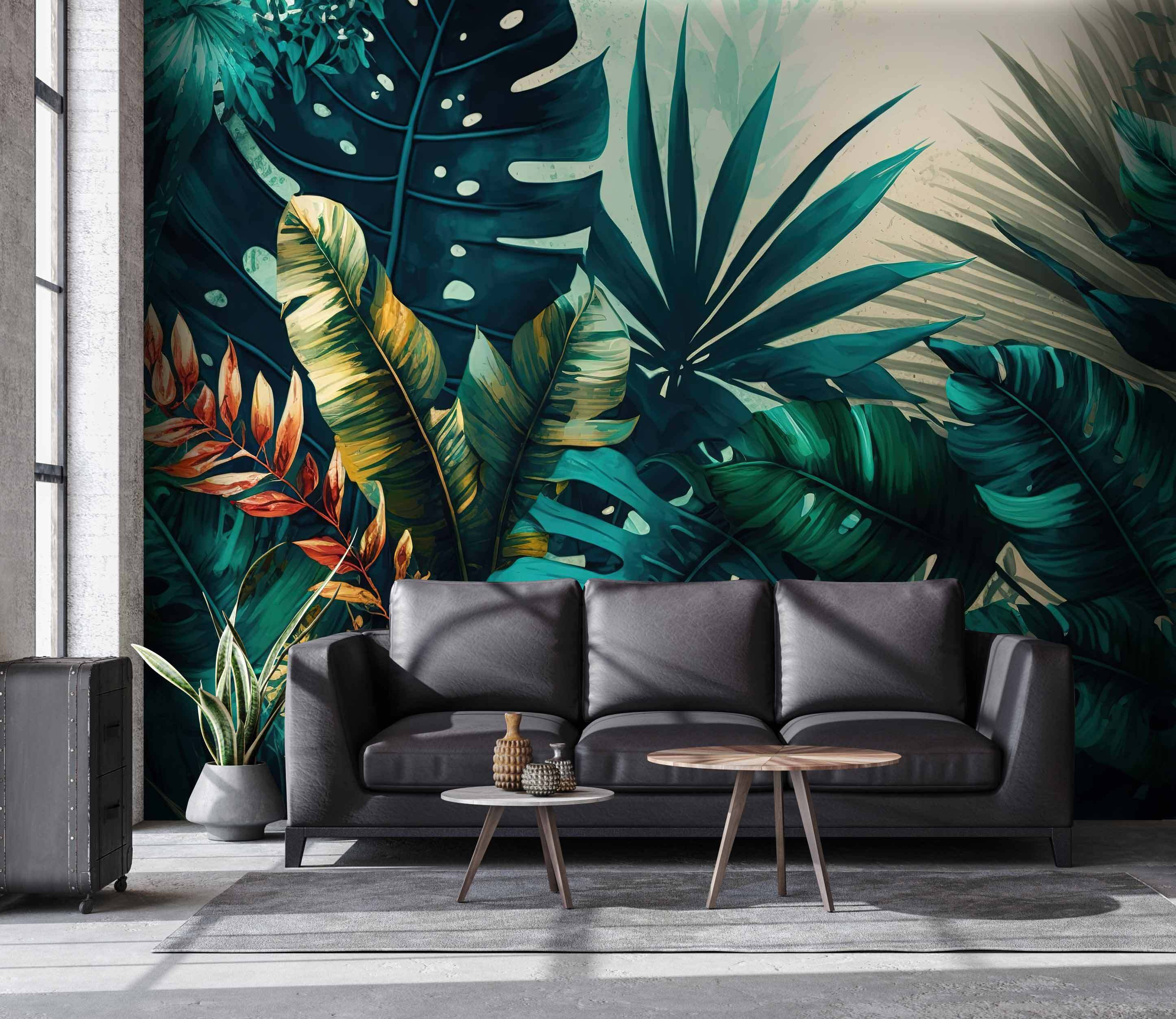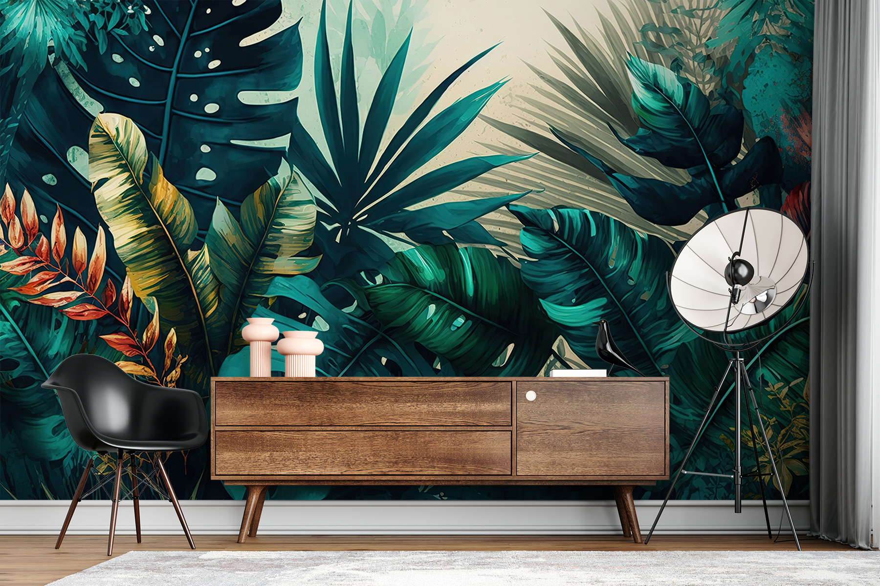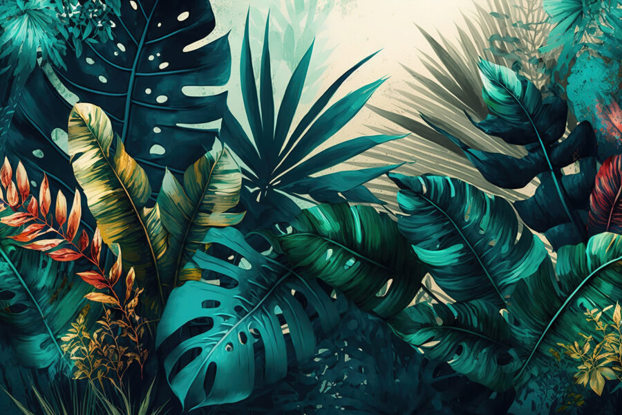 Fototapeten Lebendiges tropisches Blattwerk in Harmonie Fototapeten Lebendiges tropisches Blattwerk in Harmonie