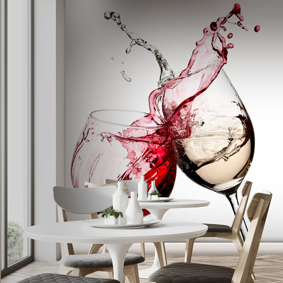 Stellen Sie sich vor, Sie betreten Ihr Esszimmer und sehen diese Fototapete mit dem Titel “Fototapeten Wine Glasses Mid-Toast, Splash Captured” an der Wand! Es ist, als würde man den perfekten “Prost”-Moment für immer festhalten. Der Zusammenprall von rotem und weißem Wein sorgt für eine epische Stimmung, fast so, als könne man das Klirren und Lachen hören. Das ist nicht nur eine Designertapete, sondern auch ein Gesprächsthema. Perfekt für jeden, der gute Zeiten und guten Wein liebt. Egal, ob Sie eine Dinnerparty veranstalten oder einfach nur nach einem langen Tag entspannen wollen, dieses Stück bringt ein bisschen Freude und Spontaneität in den Raum. Lustig, elegant und ein bisschen verwegen – so wie Ihr Lieblingswein. Prost auf fabelhafte Wände!