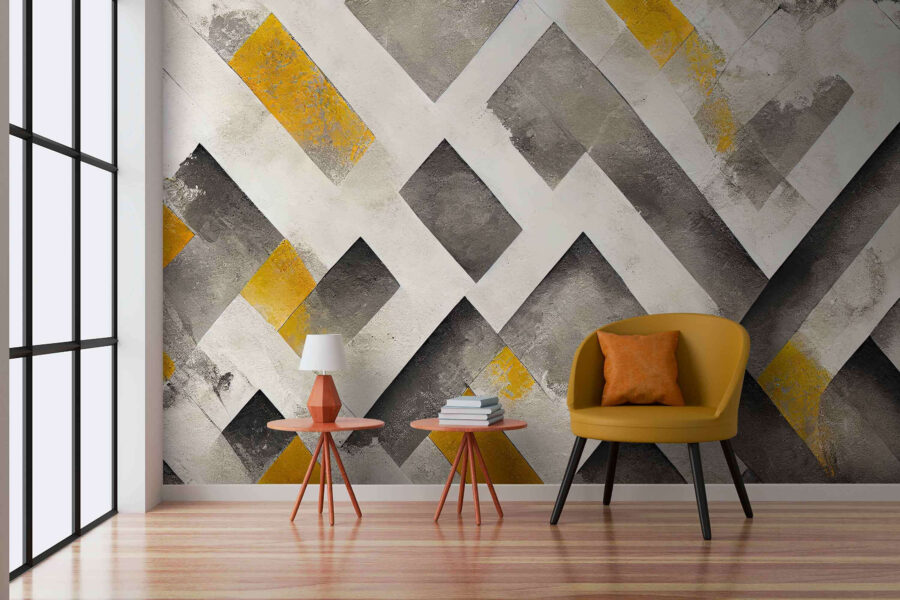 Verändern Sie jeden Raum mit dieser atemberaubenden Fototapete mit dynamischem geometrischem Muster, die einen Hauch von Flair verleiht. Stellen Sie sich vor: ein gemütlicher Raum, in dem gerade Linien und lebendige Winkel aufeinandertreffen und eine beruhigende und zugleich anregende Atmosphäre schaffen. Die erdigen Töne harmonieren wunderbar und schaffen ein Gleichgewicht, das sowohl frisch als auch zeitlos wirkt. Es ist perfekt, um ein Statement abzugeben, ohne nach Aufmerksamkeit zu schreien – wie der stille Freund, der irgendwie die interessantesten Geschichten zu erzählen hat. Stellen Sie sich vor, Sie veranstalten ein Treffen mit Freunden, und alle können nicht anders, als die Wände zu bewundern. Das wertet den ganzen Raum auf und macht jeden Raum zu einem Gesprächsanlass. Sie brauchen keine ausgefallene Dekoration – dieses Wandbild schafft mühelos die Bühne für die kleinen Momente des Lebens.