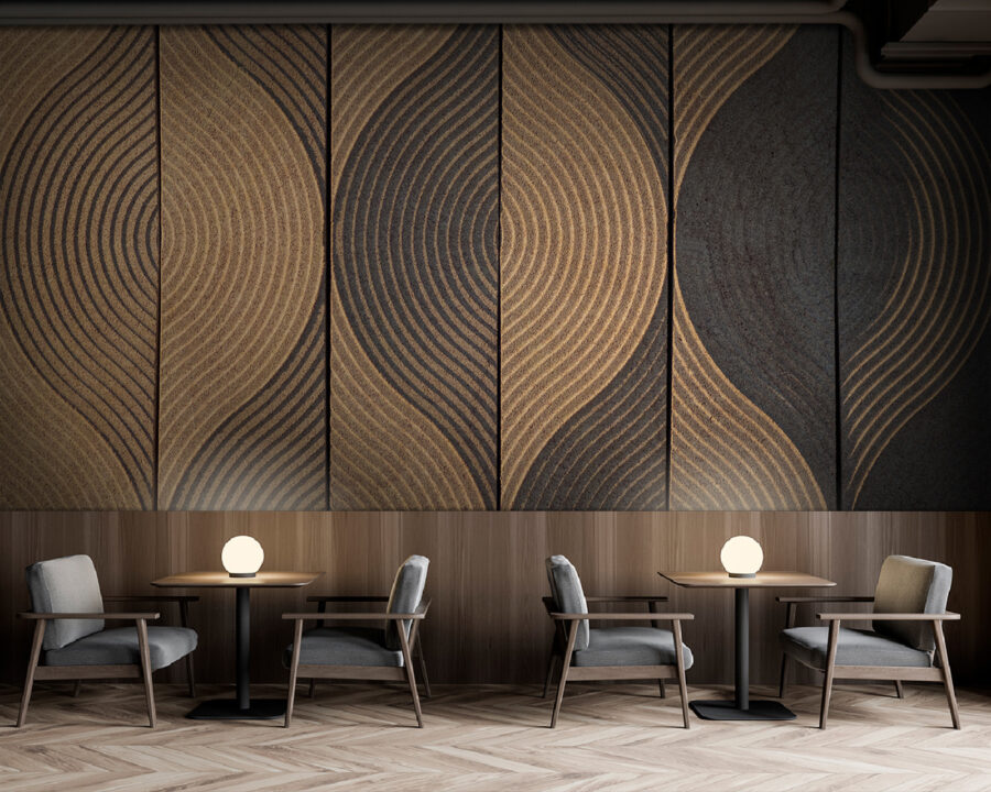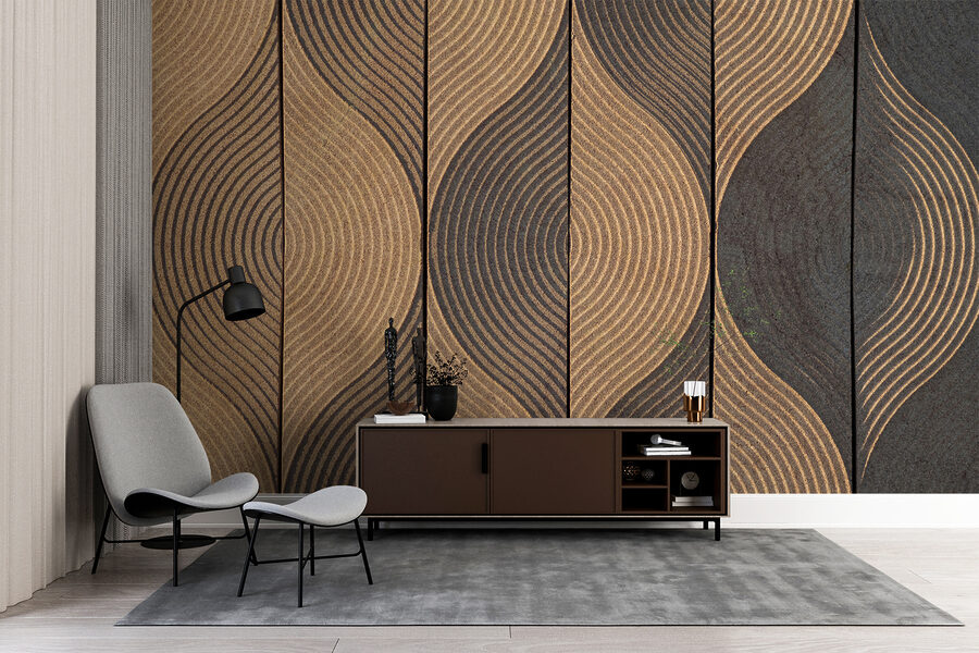 Stellen Sie sich vor, Sie könnten sich in einem Raum mit Wänden zurücklehnen, die Sie sofort in eine ruhige, erdige Stimmung versetzen – das ist es, was diese Fototapete bewirkt. Im wahrsten Sinne des Wortes ist es, als hätte man einen Zen-Garten an der Wand. Die Wellenmuster auf den Holzpaneelen erzeugen einen herrlichen, natürlichen Rhythmus, der einen einfach in seinen Bann zieht. Irgendwie hypnotisch, oder?
