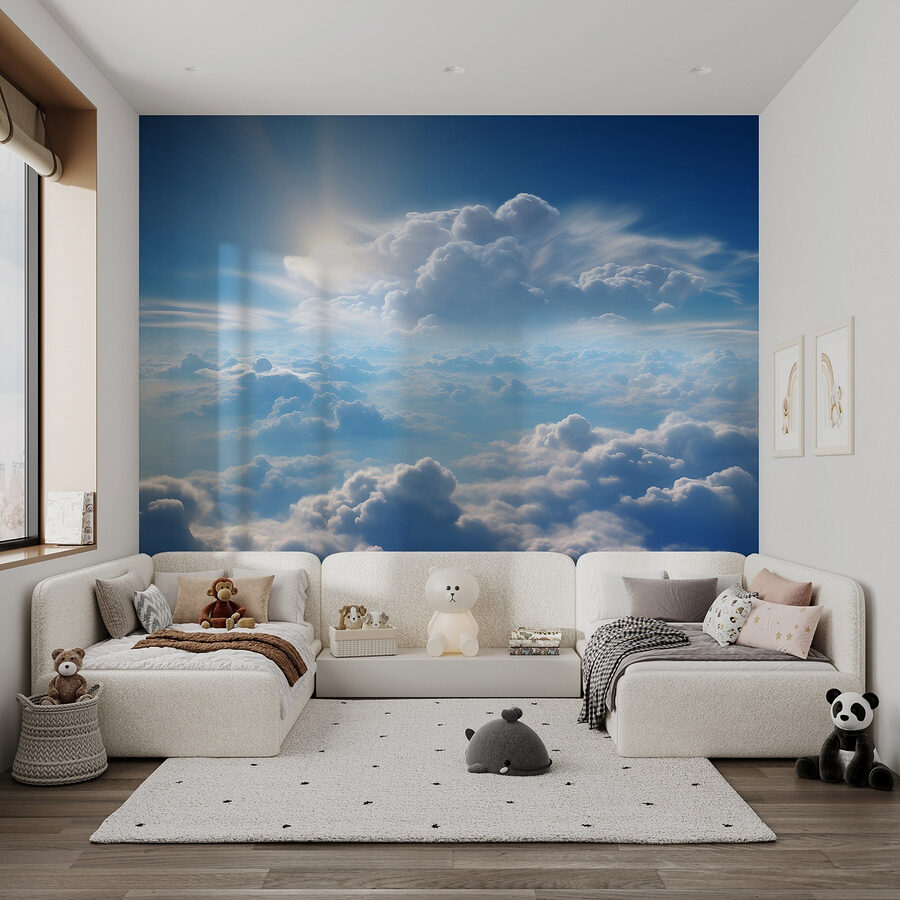 Verwandeln Sie jeden Raum in einen verträumten Rückzugsort mit dieser atemberaubenden Fototapete, die flauschige Wolken vor einem strahlend blauen Himmel zeigt. Stellen Sie sich vor, dass die Sonne durchscheint und ein sanftes Licht wirft, das sofort die Stimmung hebt. Es ist, als hätte man ein Stückchen von diesem perfekten Tag direkt an der Wand. Es eignet sich perfekt für ein Wohnzimmer, ein Schlafzimmer oder sogar eine gemütliche Leseecke und lädt zu Tagträumen und Entspannung ein. Stellen Sie sich vor, wie Sie sich in einen bequemen Sessel sinken lassen, ein warmes Getränk in der Hand, während die Welt draußen verblasst. Diese Fototapete ist ein Hauch von frischer Luft, die Gelassenheit bringt, ohne dass man ein Flugticket braucht. Wer möchte nicht das Gefühl haben, auf Wolken zu schweben?