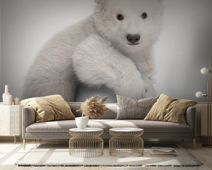 Verwandeln Sie Ihren Raum in ein gemütliches Winterwunderland mit dieser entzückenden Wandtapete, auf der ein niedlicher Eisbär zu sehen ist, der einen großen weißen Ball umarmt. Mal ehrlich, wie kann man diesem Gesicht widerstehen? Stellen Sie sich vor, Sie betreten Ihr Zimmer und werden von diesem kleinen Schatz begrüßt, der Ihrem Zuhause einen Hauch von Verspieltheit und Wärme verleiht. Perfekt für Kinderzimmer, verspielte Wohnzimmer oder überall dort, wo ein bisschen Freude gebraucht wird.